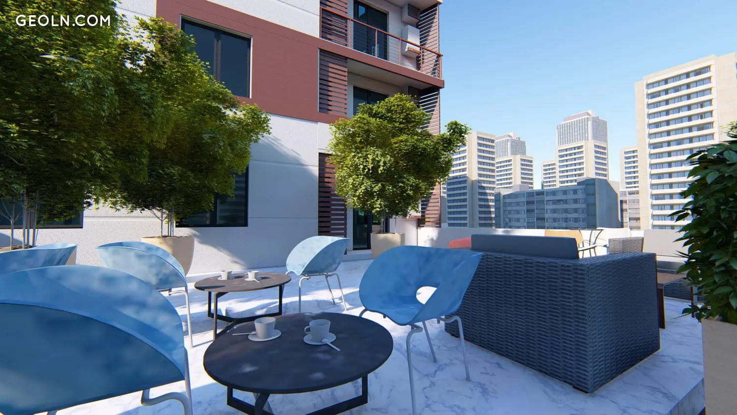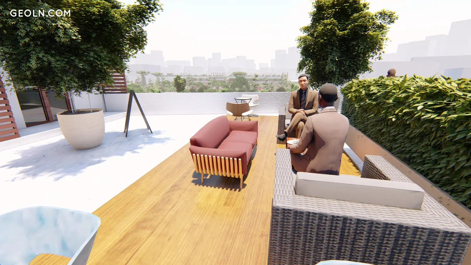 על מרפסת הגג יסדר אזור בילוי נעים עם ספות, כורסאות, כיסאות ושולחנות, כמו גם ערוגות פרחים וצמחי נוי באמבטיות.