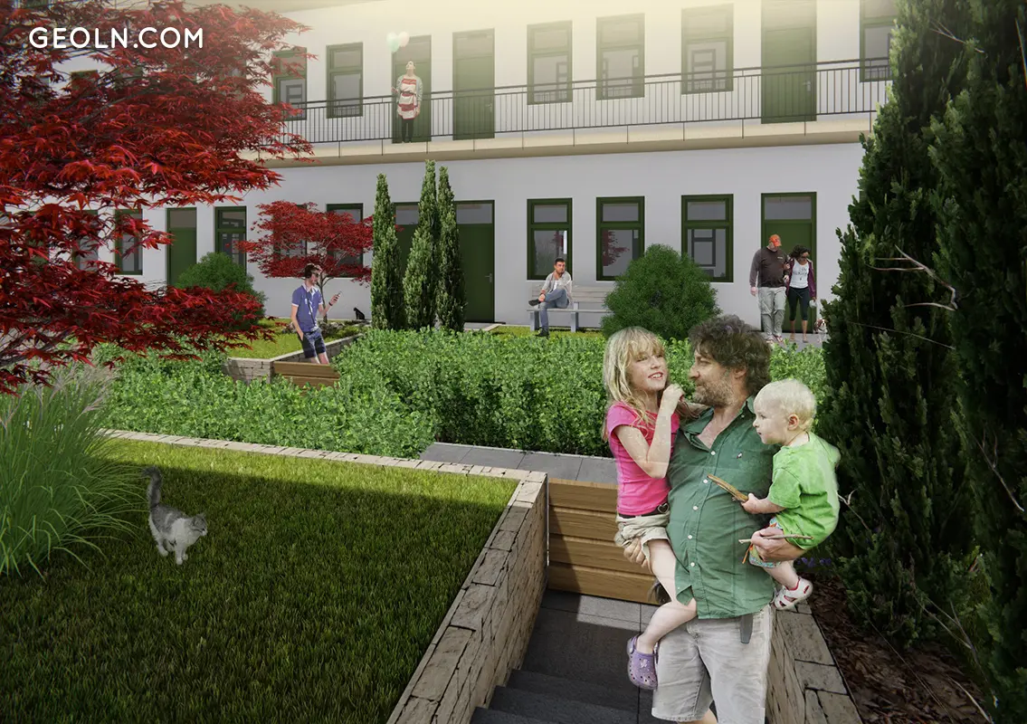 סביבת מגורים ירוקה ואיכותית - עיקרון השיפוץ הוא יצירת סביבת מגורים מודרנית מודרנית, אך יחד עם זאת ירוקה המספקת את מרחבי המגורים והשירות האיכותיים הדרושים לתושבים.