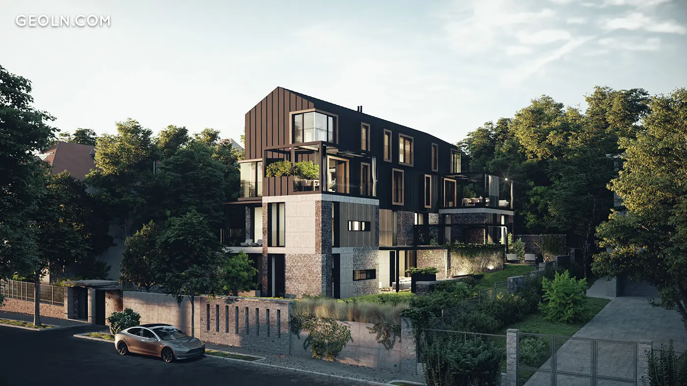VILLA MÉNESI ממוקמת על המדרון הדרום מערבי של גבעת גלרט, מעל ארבורטום בודה, בסביבה טבעית ומיקרו אקלים ייחודיים. הבניין נוצר כסינתזה של שתי צורות משולבות. העמודים הבולטים בחוזקה מהגוש התחתון, הקופסאות שזה עתה הועברו מהגוש העליון, נותנים את הדינמיקה של המבנה. על ידי חיזוק זה של זה, שתי הצורות יהיו הרמוניות ושלמות.