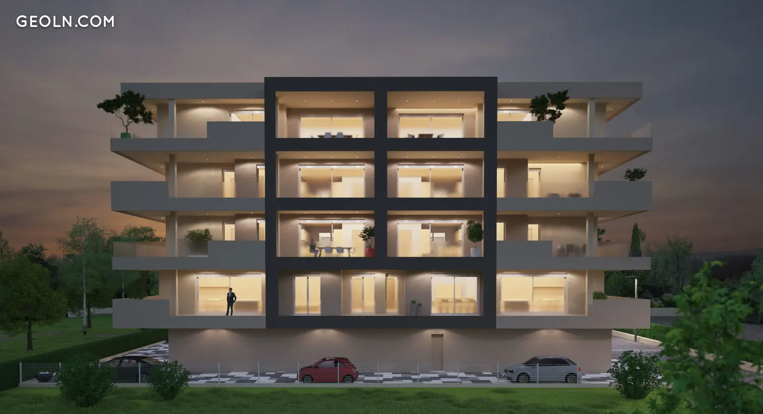 הנכס מאופיין בארבע קומות המחולקות ל -9 יחידות דיור. בקומת הקרקע אנו מוצאים את המוסכים שהוקצו לכל דירה ואילו בקומה הראשונה ישנם 3 בתים של כ- 80 מ"ר עם שני חדרי שינה, שני חדרי אמבטיה, מטבח ואזור מגורים עם חלל פתוח ומרפסת של כ- 37 מ"ר כל אחד. . בקומות השנייה, השלישית והרביעית ישנם 6 בתים נוספים בני 115 מ"ר שכל אחד מהם מחולק בחדריהם לשלושה חדרי שינה, שני חדרי אמבטיה, מטבח ואזור מגורים עם שטח פתוח, או עם אפשרות חלוקה לחדרים. יש גם מרפסת נדיבה למגורים לכל אחת מהיחידות ששטחן כולל 60 מ"ר. כל יחידה מצוידת באוורור מכני, מיזוג תעלות ומצוידת בתא טכני.
