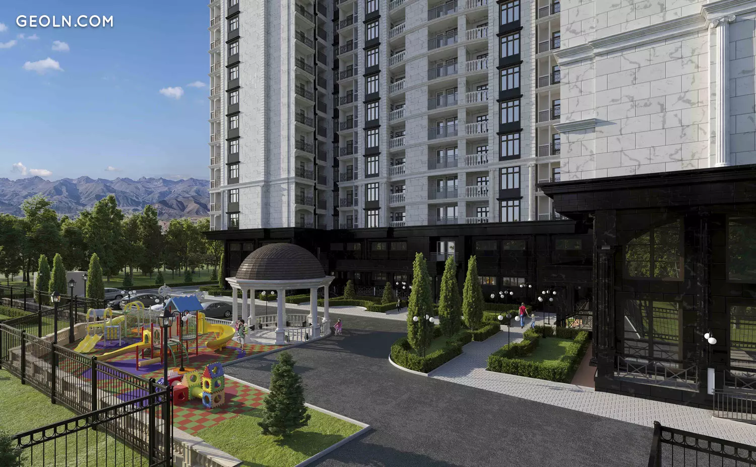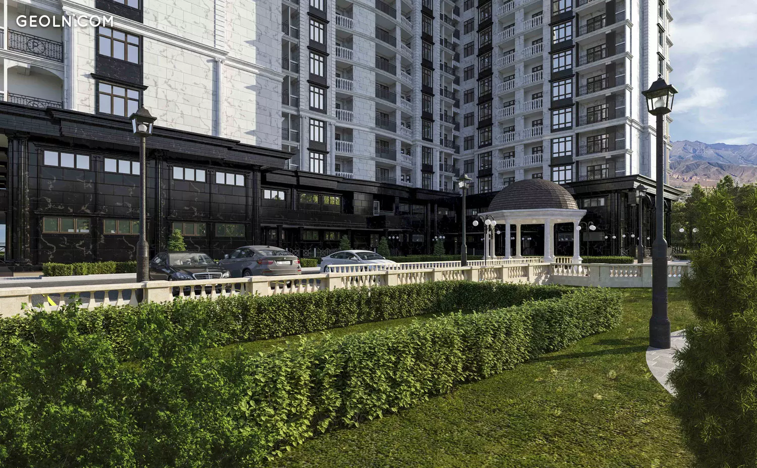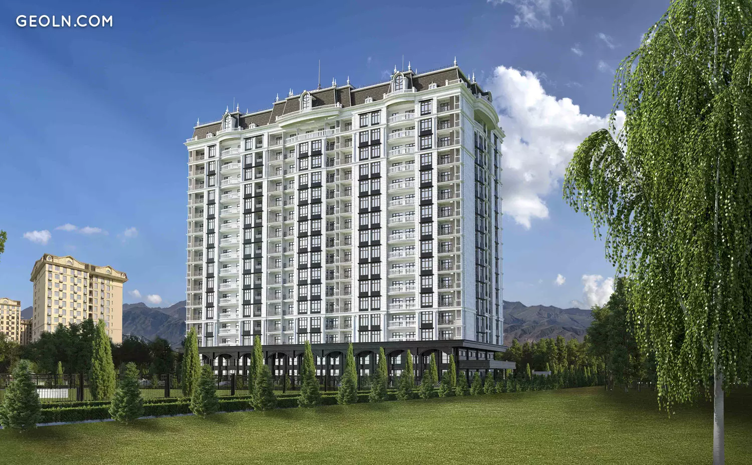 מתחם המגורים "ונציה" בבישקק הוא בניין עלית בן 16 קומות, שנבנה בטכנולוגיה מונוליטית. חזית מודרנית מאווררת העשויה כלי חרס מחרסינה משפרת את ביצועי הבית.