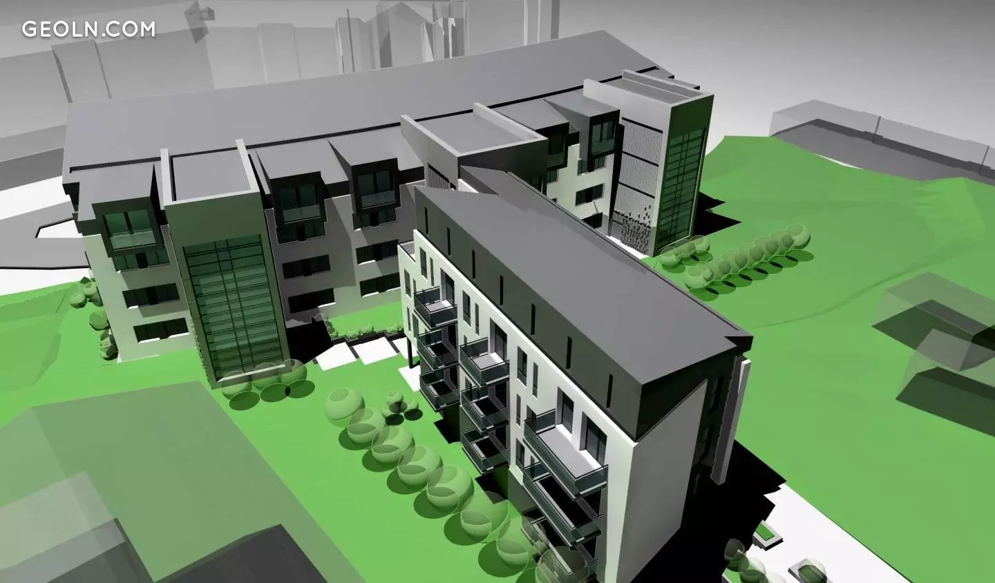 התכנון האדריכלי של ההשקעה הוכן על ידי ארכיטקסי מיקאלייסקי וויזה. הבניין מורכב משני פלחים מחוברים זה לזה, יש לו גובה מרבי של עד שלוש קומות מעל הקרקע. הוא נעשה בסגנון מודרני, עם גוף פשוט עם אלמנטים של גוף אלכסוני. נעשה שימוש גם באלמנטים של פריסת מפל, פריסות חלונות לא סדירות וזגגות נרחבות. החזית נשמרה בשילוב של לבן ואפור, בתוספת אלמנטים בהירים בגימור מעקות למרפסת ממתכת.