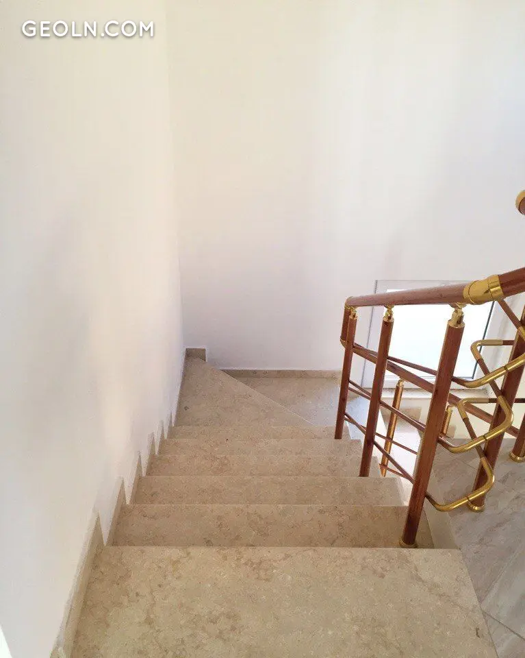 גרם מדרגות משיש מוביל לקומה השנייה, שם יש חדר רחצה עם מקלחת ו-2 סלונים המשקיפים לים ולהרים.