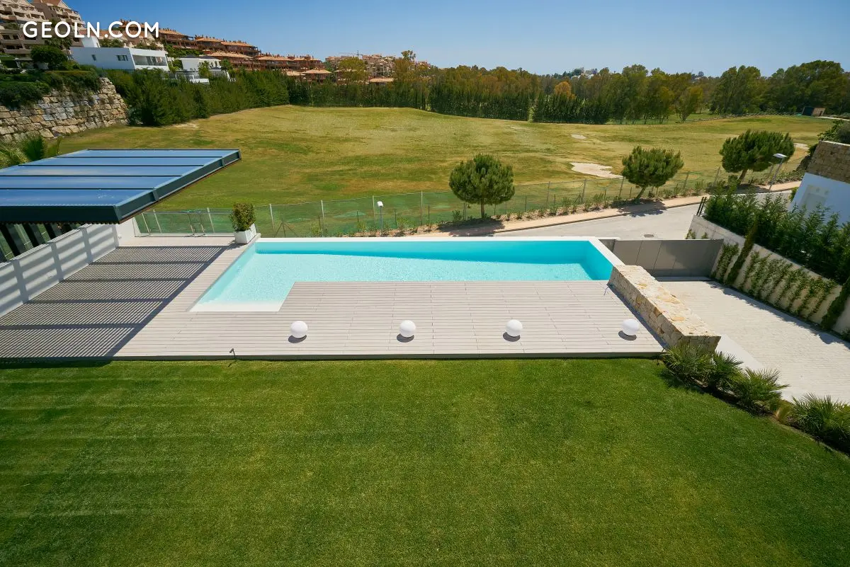 וילה למכירה בסגנון מודרני, עם נוף פתוח למגרש הגולף אטליה. קומת קרקע: חניה עילי ל-3 מכוניות. אזור כניסה רחב. סלון ופינת אוכל גדולים. מטבח פתוח מאובזר המשקיף על מסלול הגולף. חדר שינה אחד עם שירותים וארונות. שירותי אורחים. כניסות וטרסות. בריכת אינסוף דו צדדית. אזור מנוחה ליד הבריכה. גינה עם תאורה והשקיה אוטומטית. למעלה: 3 חדרי שינה עם חדרי רחצה; חדר הלבשה בחדר השינה הראשי. טרסות. מרתף: חדר רב תכליתי (חדר כושר, קולנוע וכו'). מאגרים. חדר מכונות כביסה.