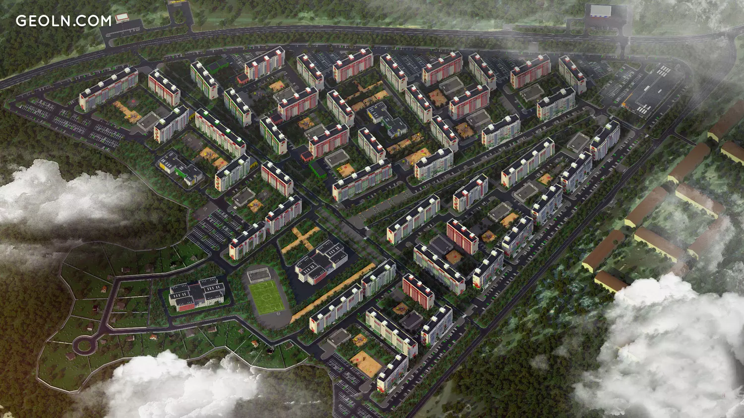 הבנייה מתבצעת בכפר זאפדני, ברחובות איזומרודנאיה וסמטת וישנבאיה. רק 2 ק"מ מפרידים את השטח ממאגר שרנבסקי. יש יערות אורן וליבנה סביב, אוויר נקי, אקולוגיה נוחה.
