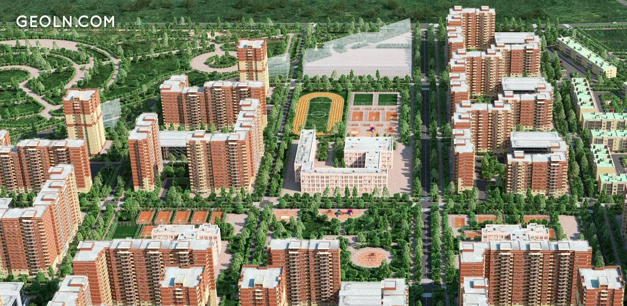 מחוז הספורט יורכב מבתים בקומות שונות, המקובצים לרבעים קטנים. הבנייה מתבצעת באמצעות טכנולוגיה מונוליטית עם ביצוע קירות חיצוניים מבלוקים סודה עם בידוד נוסף וחיפוי לבנים. בכניסות מותקנות מעליות מהירות ללא רעש, מתבצעות תיקוני תכנון ומתקנים מקום לאחסון עגלות.