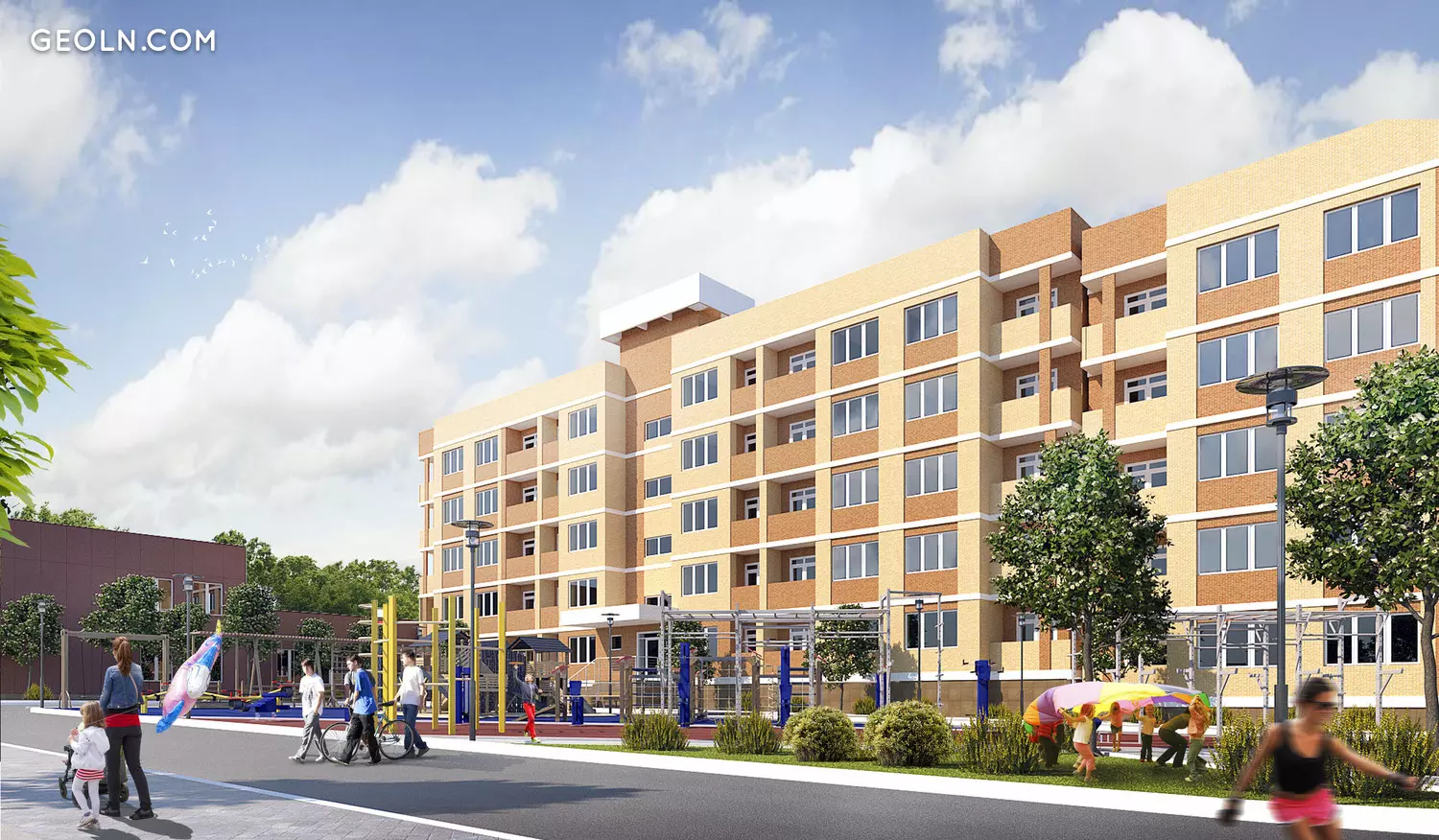 מתקני שעשועים עם ציפוי גומי בטוח מותקנים בכל חצר. יש גם אזורי אימון, מגרשי כדורגל וכדורסל, ספסלים עם סככות לבילוי. בקיץ, Wi-Fi יפעל בשטח.