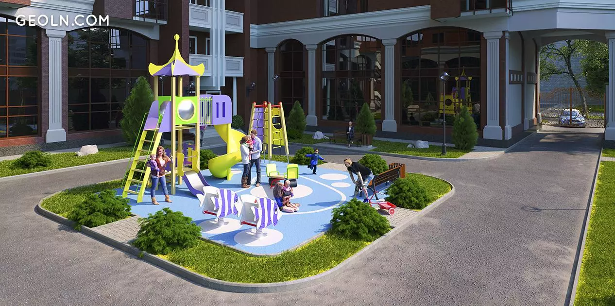 על פי תוכנית הפיתוח ניתנת גינון של האזור המקומי. הוא יכלול גם גן שעשועים מודרני, מוסך תת קרקעי וחניה לאורחים. החצר מגודרת ונמצאת כל הזמן במעקב וידאו.