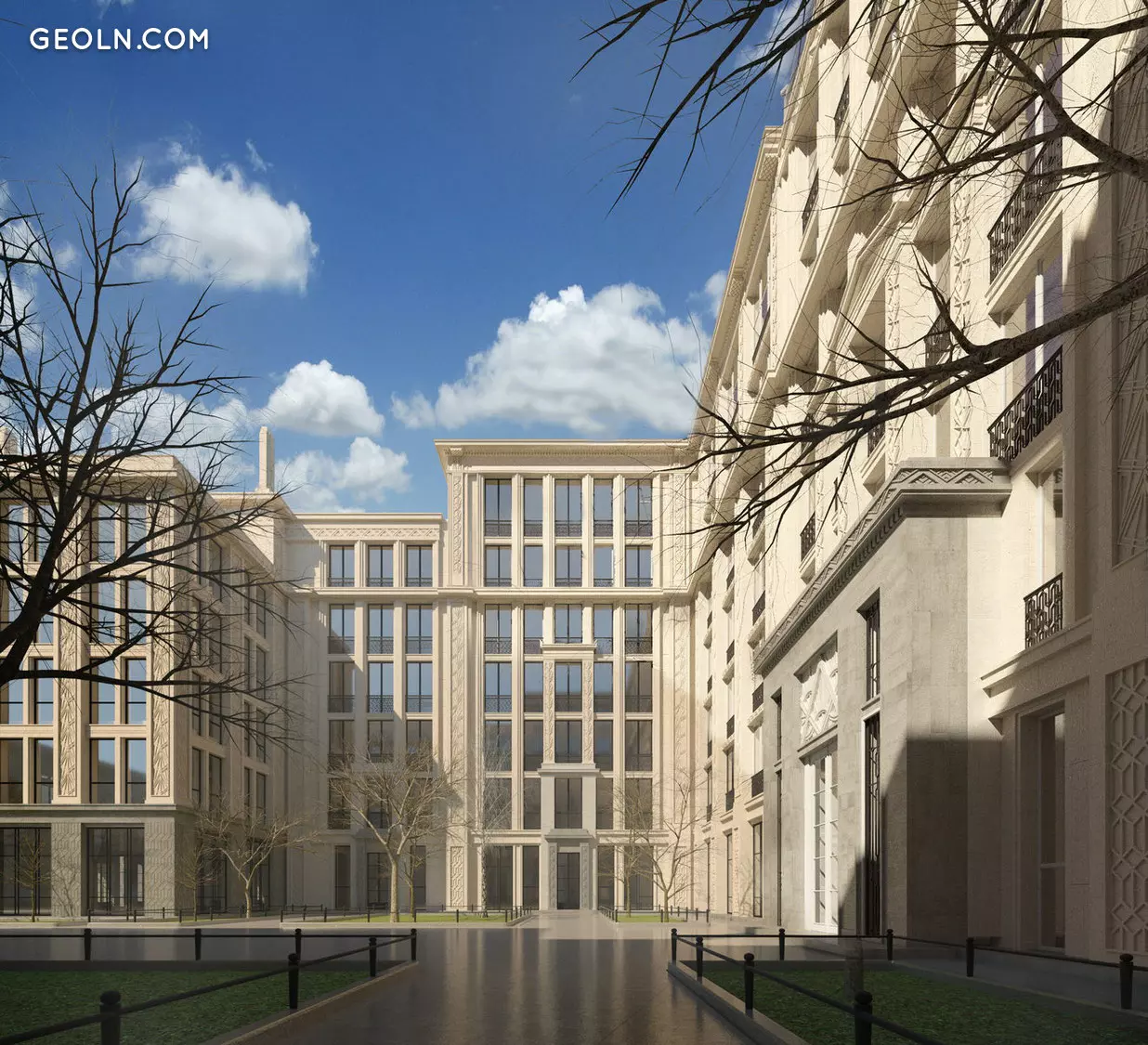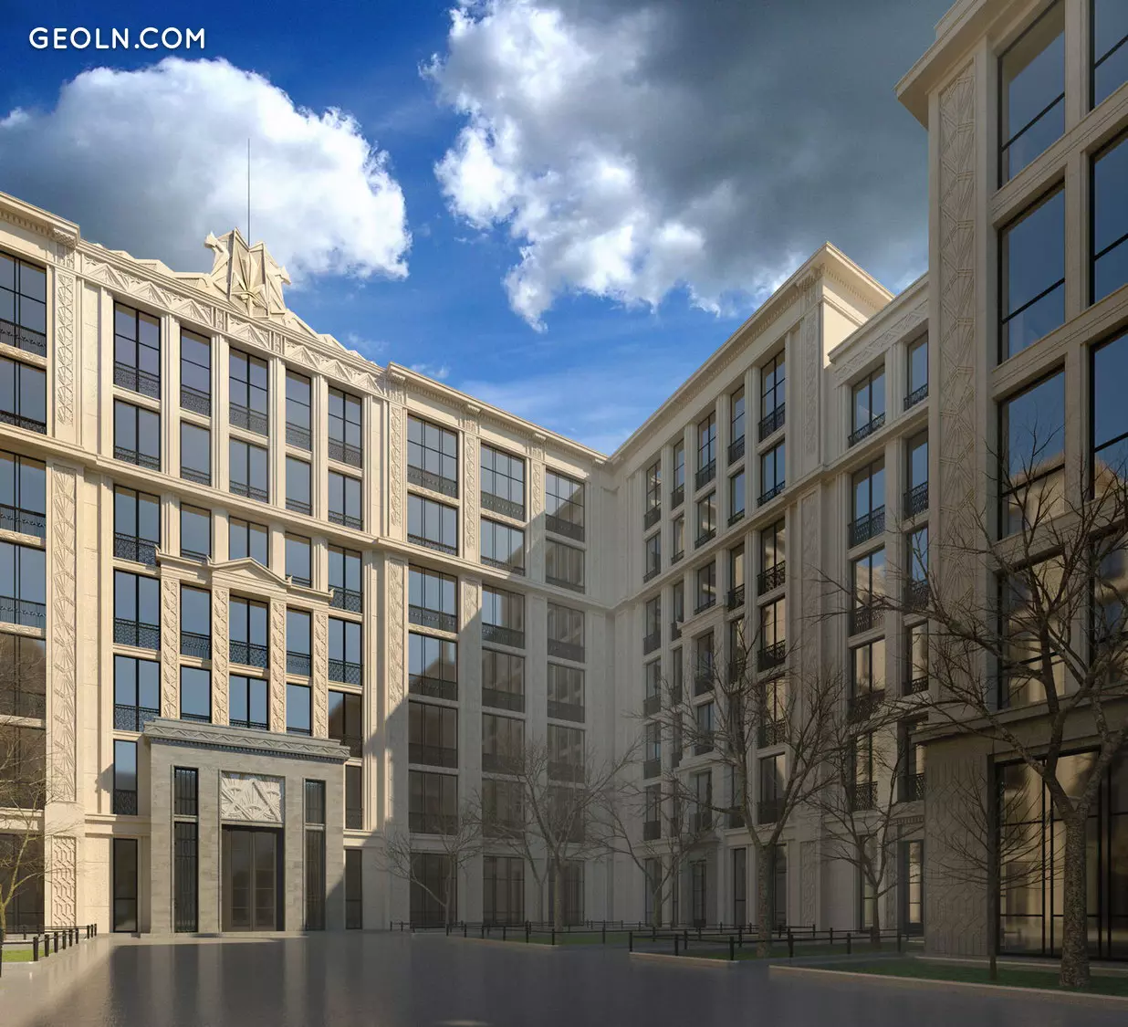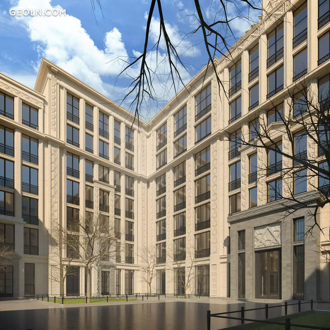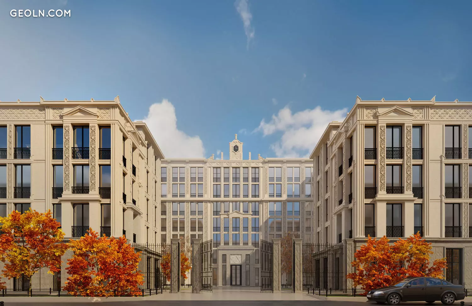המראה האדריכלי משלב בין תמונות הבניינים ההיסטוריים של סנט פטרסבורג לבין הטרנדים המתקדמים של הסגנון המודרני בבנייה. החזיתות המחמירות והדקות בסגנון ארט דקו מעוטרות באריזות טיח, קישוטים ופילאסטים. השילוב של גיאומטריה לקונית של מראה חיצוני ועיצוב מאופק אך אלגנטי הופך את המבנה לקשור לדוגמאות הטובות ביותר של צפון ארט נובו.