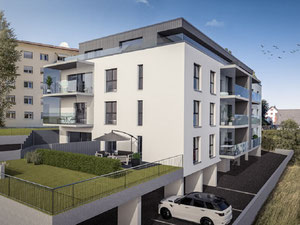 בניה חדשה של 9 דירות ב-PPE: 4 דירות בנות 4.5 חדרים, 4 דירות בנות 3.5 חדרים ופנטהאוז 1 של 5.5 חדרים. דירת 3.5 חדרים הכוללת: אזור יום: כניסה אחת, מטבח מאובזר פתוח לסלון/פינת אוכל, שירותים לאורחים עם כיור. אזור שינה קטן מצומצם: שני חדרי שינה של 14 ו-11 מ"ר - חדר רחצה של 5 מ"ר עם מקלחת, שירותים, כיור, מקום לעמוד כביסה. גישה במרתף לחניה תת קרקעית בדלת בשלט, כניסה ראשית, מעלית. מקום חניה אחד בחניון תת קרקעי, מרתף אחד, חדר משותף אחד לאופניים ועגלות, חדר קונסיירז' אחד, חדר טכני של משאבת חום.