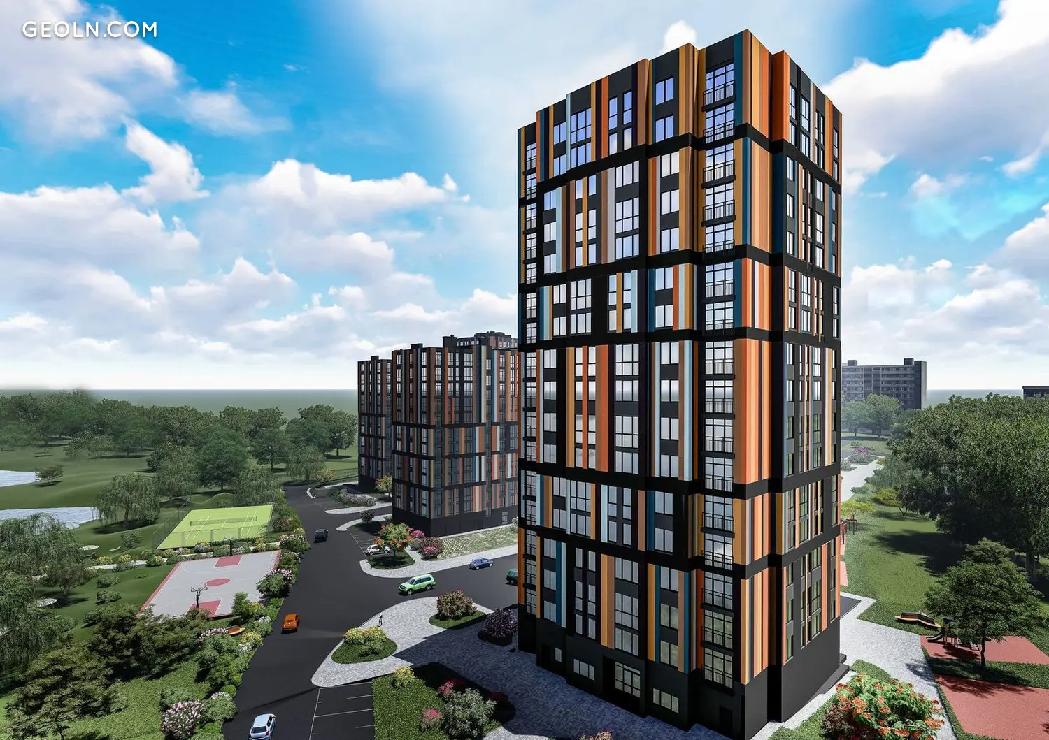 בדירות יהיו חלונות פנורמיים, כך שהחדר יחדור מספיק לאור היום. חזית הבתים מעניינת בזכות הבנייה הרב-מפלסית והגימור הכהה שלה עם אלמנטים מנוגדים.