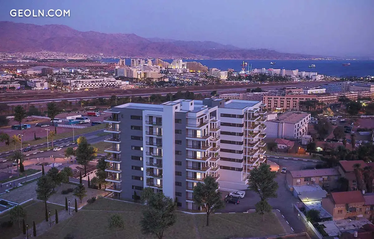 Prestigious residential complex in the heart of the city of Eilat. 2 buildings combined with a commercial floor, a private gym for the complex, an underground parking lot, 2 elevators in the building, a sun terrace and a storage room for each apartment.