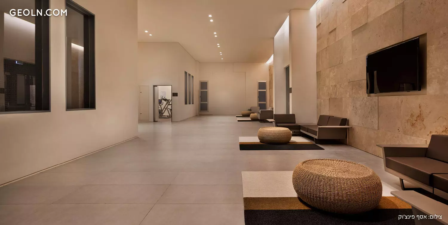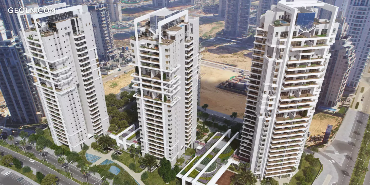 The complex is extremely luxurious and covers an area of about 20 dunams, with three towers of 25 floors. In addition to the apartment towers, there is an expansive spa structure that includes an indoor heated swimming pool, gym and lounge. The entrance pavilion is luxurious, with 24/07 reception and security. The entire complex is connected to Sderot Mekorot which creates an elegant connection between all the buildings surrounded by ornamental gardens and ecological pools.
