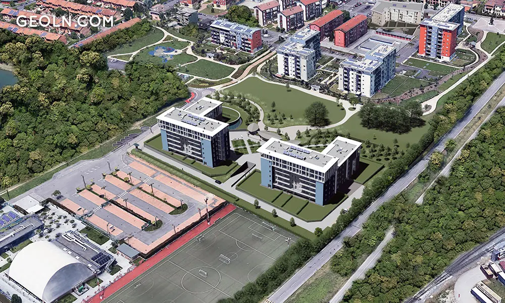 The buildings, with sober lines, enlivened by arcades and the particular shape of the roofs, are raised above street level. The entrances embellished with elegant windows and the protected views towards the park give brightness and panoramic views to the entire structure. The apartments are divided into two-room, three-room and four-room apartments. The penthouses have spacious covered terraces with double and triple exposure, while the houses on the ground floor enjoy large private gardens.