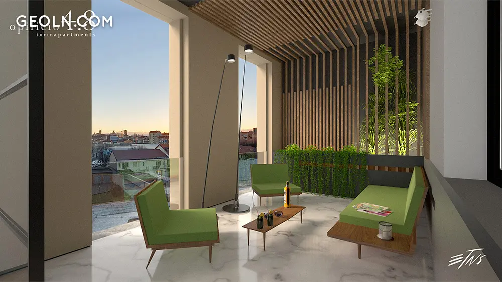 Great importance has been given to the outdoor spaces of each apartment from where it is possible to enjoy the view of the city and the mountains.