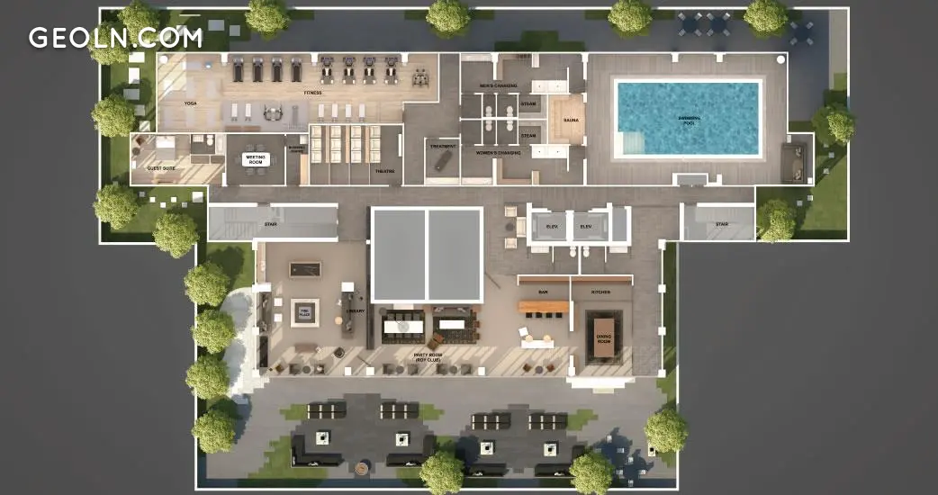 ავტოსადგომი ფიტნეს-დარბაზი ბასეინი კომერციული ფართები საბავშვო მოედანი სკოლასთან ახლოს საბავშვო ბაღთან ახლოს სუპერმარკეტთან ახლოს |