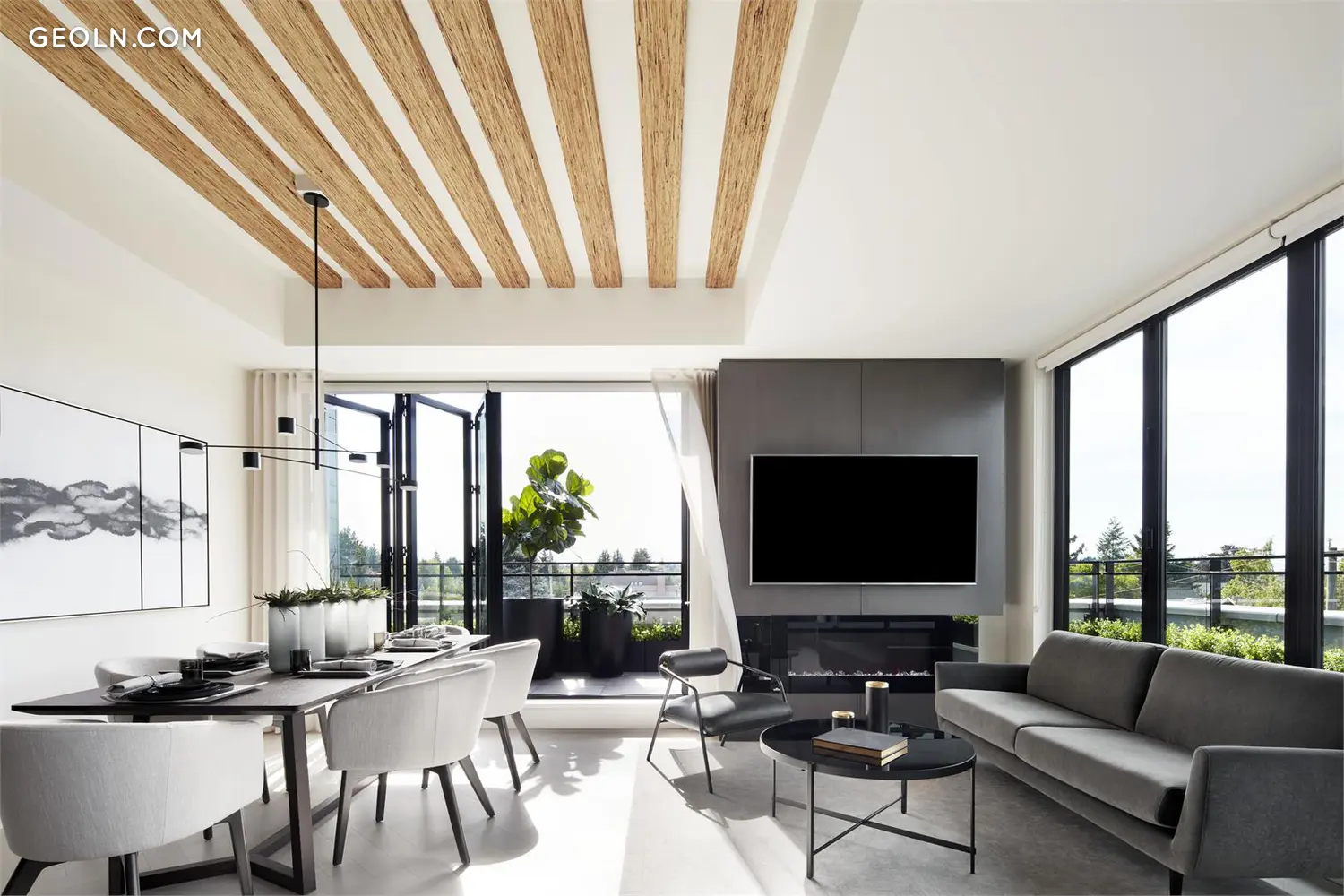 ღია, დაუბრკოლებელი იატაკის გეგმები და მაღალი ჭერი ქმნის კეთილშობილურ საცხოვრებელ ადგილებს, რომლებიც დასრულებულია დასავლეთის სანაპიროს დიზაინის მდიდარი ინტერპრეტაციით. დიდი აივნები და მოცურების მინის კარები არ აშორებს ხაზს შიგნიდან და გარედან - ისინი შლის მას.