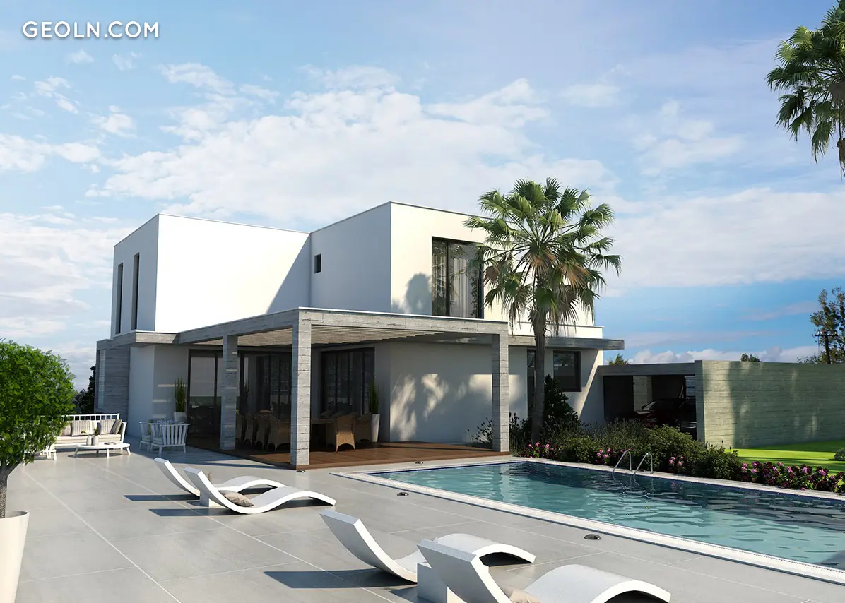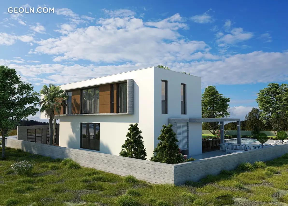 Aristodemou Architects– ის მიერ უმაღლესი დონის დიზაინით, სახლი შედგება 4 საძინებლისგან, რომელთაგან ორი არის კომფორტული ოთახი, ღია გეგმის სამზარეულო და მისაღები ოთახები, დიდი ეზო, ორი მანქანის გაჩერება და საქვაბე / სათავსო. ოთახი ვინაიდან სამი მთავარი საძინებელი ოთახი, მათ შორის საყოფაცხოვრებო საძინებელი, მდებარეობს ზედა სართულზე, მეოთხე ვიზიტორთა საძინებელი ოთახი გამოყოფილია პირველ სართულზე, თუმცა იგი მთლიანად გამოყოფილია და არ არის გამოყენებული დანარჩენი საერთო გამოყენების ადგილებში.