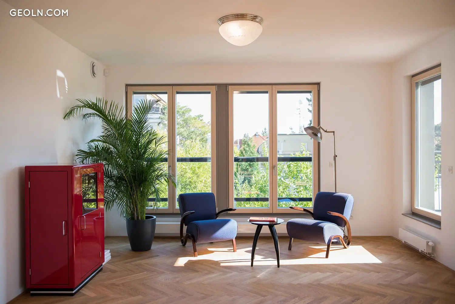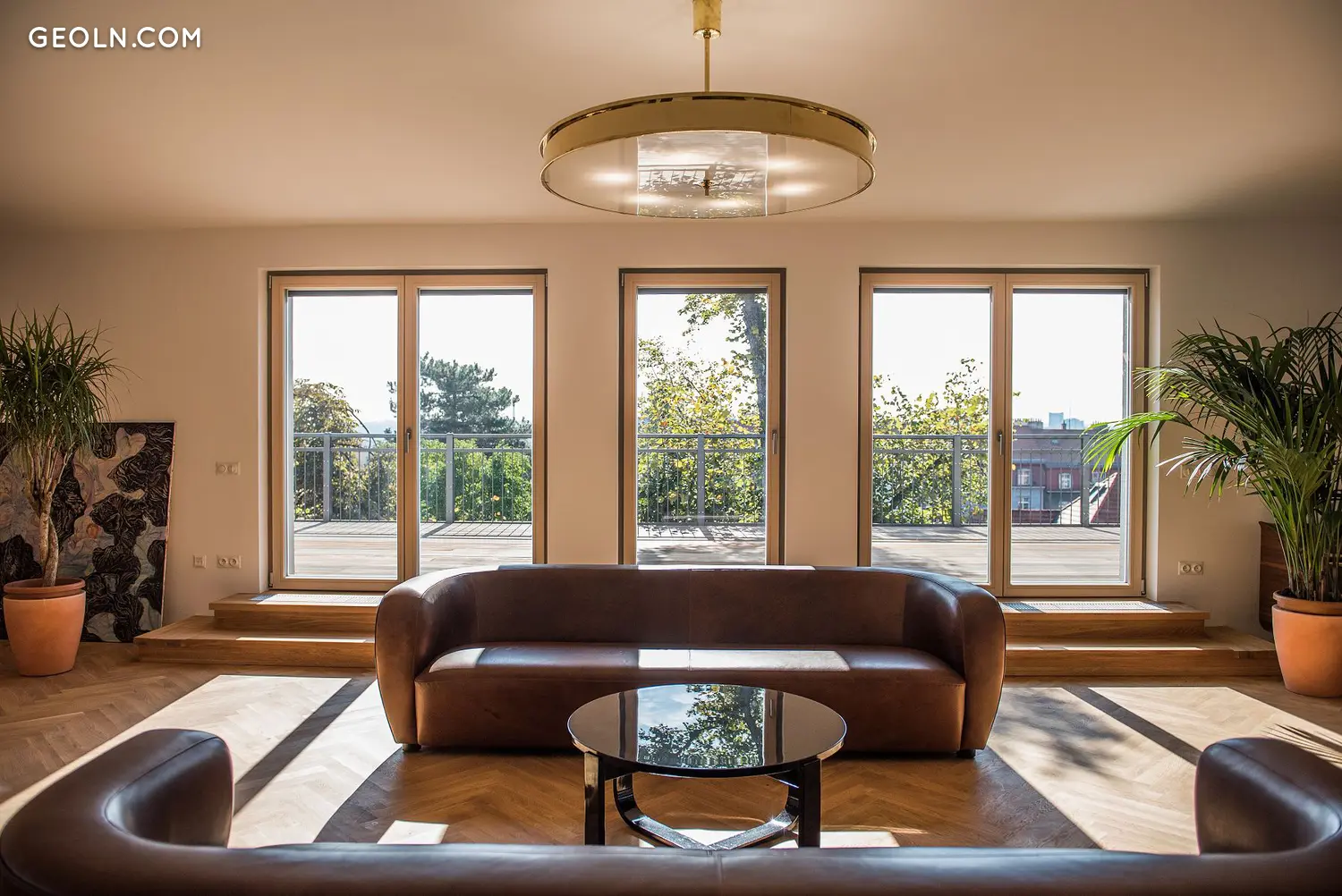 ბინების სტანდარტული აღჭურვილობა მოიცავს ფართო ხის სამმაგი შუშის ხმასა და თერმული იზოლაციისთვის, აღჭურვილია გარე ელექტრო ჟალუზებით, მუხის პარკეტის იატაკით, აბაზანისა და ტუალეტის ხარისხის აღჭურვილობით, ფილებით, ფილებით, კონტროლირებადი ვენტილაციით გამაჯანსაღებელი ან უსაფრთხოების კარებით. მომხმარებლისთვის ყველაფერი მორგებულია. ბინებს აქვთ ბაღი ან აივანი, თითოეულს აქვს სარდაფი, შეგიძლიათ გაჩერდეთ მიწისქვეშა ავტოფარეხში. თითოეული ბინისთვის შეგიძლიათ აირჩიოთ მეტი სადგომი. პირველ სართულზე მდებარე ბინებს ავსებს ბაღი, ზედა სართულებიდან ულამაზესი ხედი იშლება პრაღის ისტორიული ცენტრისკენ. ყველაზე დიდი ბინა 360 მ 2 ფართით არის ერთ – ერთი საუკეთესო ბინა სახურავის ტერასით და 140 მ 2 ფართობით.