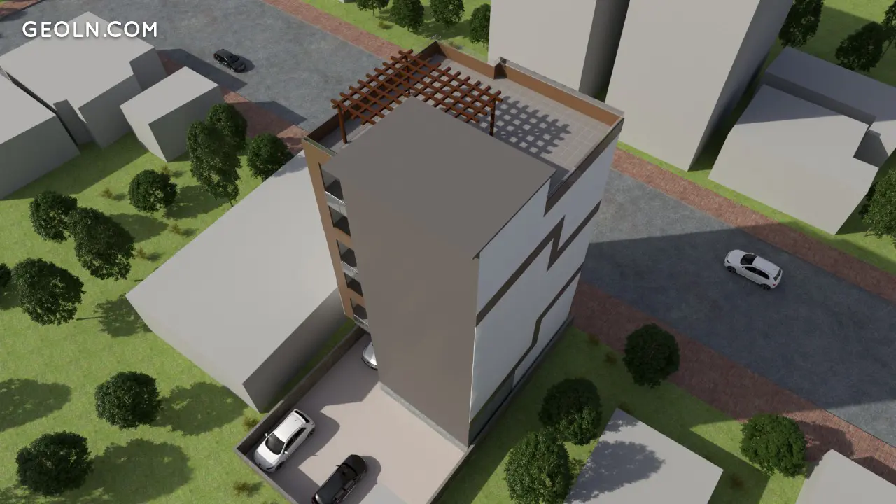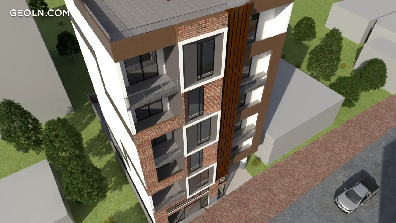 6 სართულიანი სახლი შენდება მოწინავე ტექნოლოგიების გამოყენებით ეკოლოგიურად უსაფრთხო მასალებისგან.