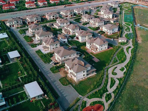 პროგრესის landscaping ეზოები დაგებული ფილები. ლანდშაფტის მებაღეობის განხორციელდა აქ, ყვავილების საწოლი და გაზონების შეიქმნა. ბავშვთა დასვენების, არსებობს სპორტული და სათამაშო სფეროებში. ყველაზე უსაფრთხო გარემოს შესაქმნელად, პერიმეტრი დახურულია გარედან, რომელიც აღჭურვილია ვიდეო სათვალთვალო სისტემებით. ავტო შეიძლება კომფორტულად შესახლებულ მიწისქვეშა ავტოსადგომი.