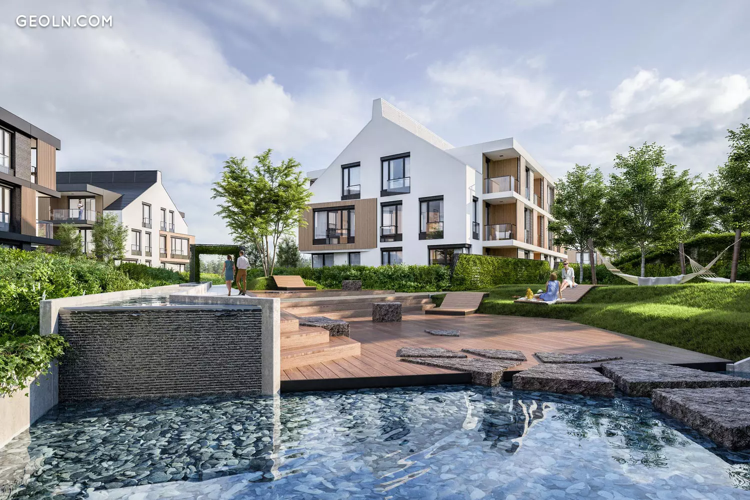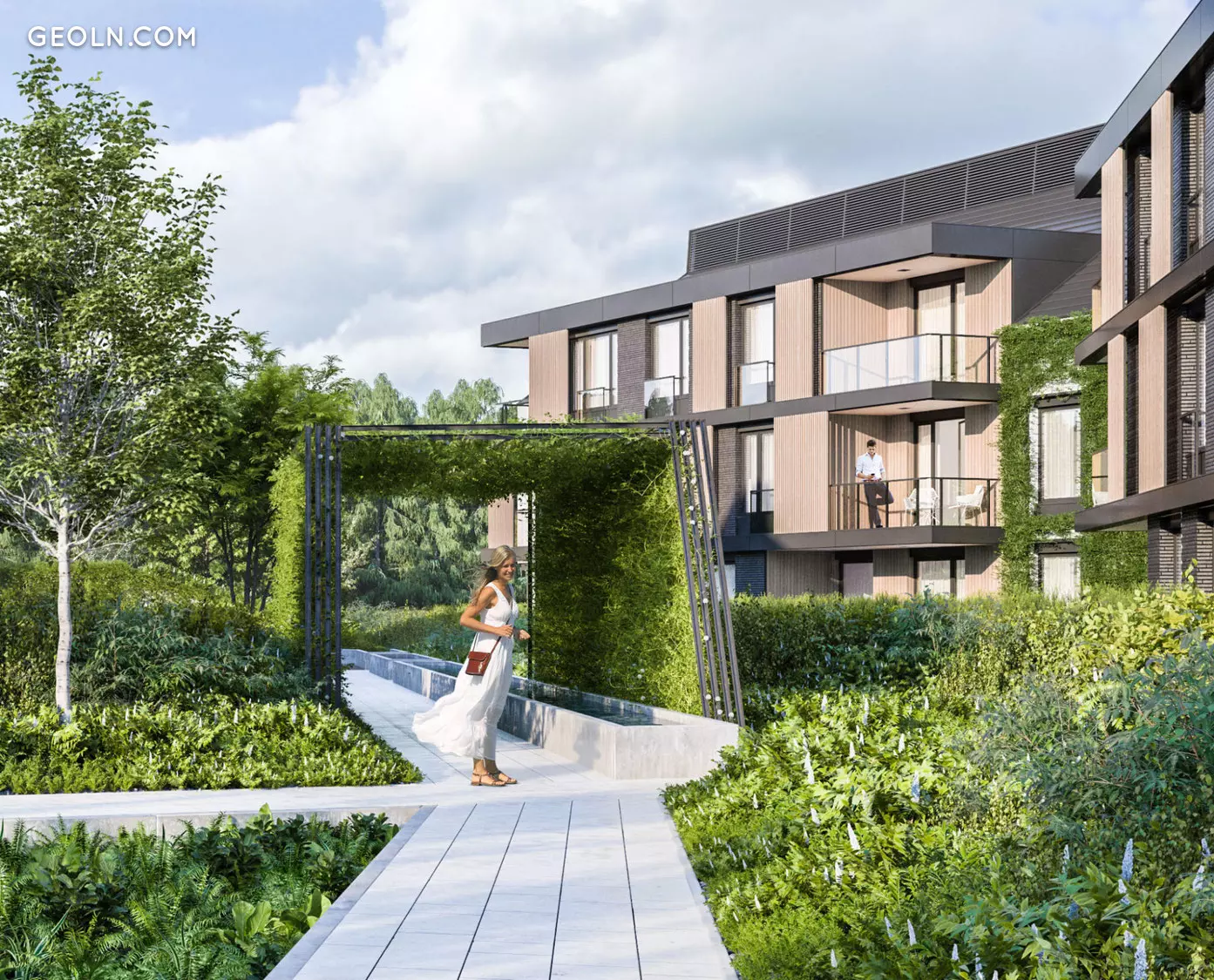 სამკვიდროს ორსართულიანი შენობები აგებულია ვილის განვითარების სტილში და მიჰყვება ბაღის ქალაქის კონცეფციას. გამოყენებულია სხვადასხვა მყარი განლაგება და გაკეთდა დახრიული სახურავები. ფასადები დასრულდა თეთრი ან ყავისფერი ჩრდილებით, გამოყენებული იქნა მრავალი ელემენტი და ხისგან დამზადებული დეკორატიული პანელები და ფართო მინისები. საერთო ტერიტორიები დასრულებულია ბუნებრივი მასალებით - ქვა, მარმარილო და ხე.