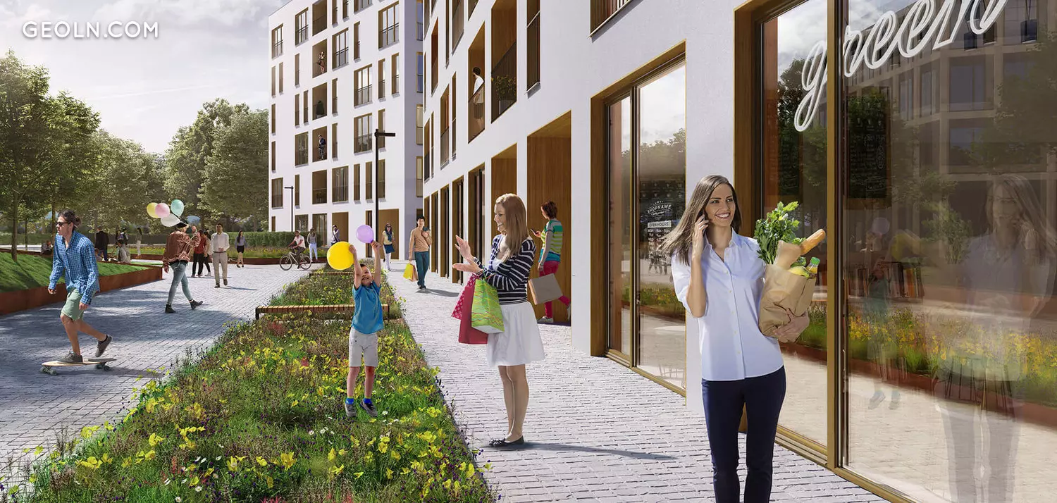 ინვესტიციის მახლობლად არის Bernardy Bernardska Woda park, Sielecki park, Arkadia park, სპორტული კლუბები, ჩოგბურთის კორტები, ყინულის მოედანი, პანორამა სავაჭრო ცენტრი (400 მეტრი), ძვირადღირებული სამედიცინო ცენტრი, აფთიაქები, კაფეები და რესტორნები, ენის სკოლები, პოლონური ფოსტა, ეკლესია და ა.შ. ABC სასურსათო მაღაზიები (750 მეტრი) და Carrefour Express (850 მეტრი), Tesco სუპერმარკეტი (1 კილომეტრი), Sadyba Best Mall სავაჭრო ცენტრი კინოთეატრით (1.7 კილომეტრი), დაწყებითი სკოლა წმ. ფრენსის (650 მეტრი), საბავშვო ბაღების 27 275, 210 210 და 39 391 (1 კილომეტრის მანძილზე), school 103 დაწყებითი სკოლა და ლიცე ფრანსის დე ვარსოვის დაწყებითი სკოლა (1.5 კილომეტრი). Łazienki Królewskie პარკის მიღწევა შეგიძლიათ 10 წუთის განმავლობაში ველოსიპედით.
