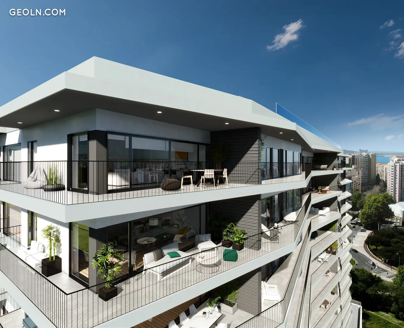 ფრთხილი, ელეგანტური ხაზების შენობა დააპროექტა Saraiva + Associados არქიტექტორების სტუდიამ. ამ ახალი აშენებული სახლების ფასადი ავლენს მის იდენტურობას და ხაზს უსვამს ფართო ტერასების პოტენციალს, რომლებიც ფართო პანორამული ხედებით სარგებლობენ. შენობის შესანიშნავი ორიენტაცია მზის ამოსვლისა და მზის ჩასვლის მიმართულებით, საშუალებას აძლევს ყველა ახალშენებულ სახლს ისარგებლოს განსაკუთრებული ბუნებრივი მზისგან, აგრეთვე ხედით Miraflores Urban Park- ზე, Monsanto Park- ზე და იგი განლაგებულია ძალიან მოკლე დროში. მანძილი მდინარე ალგესიდან.