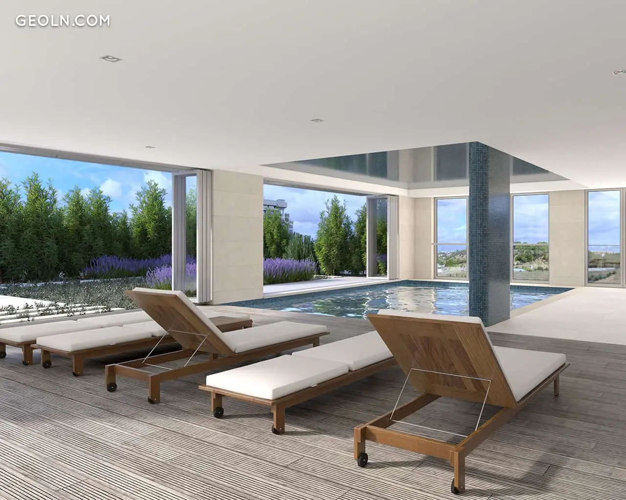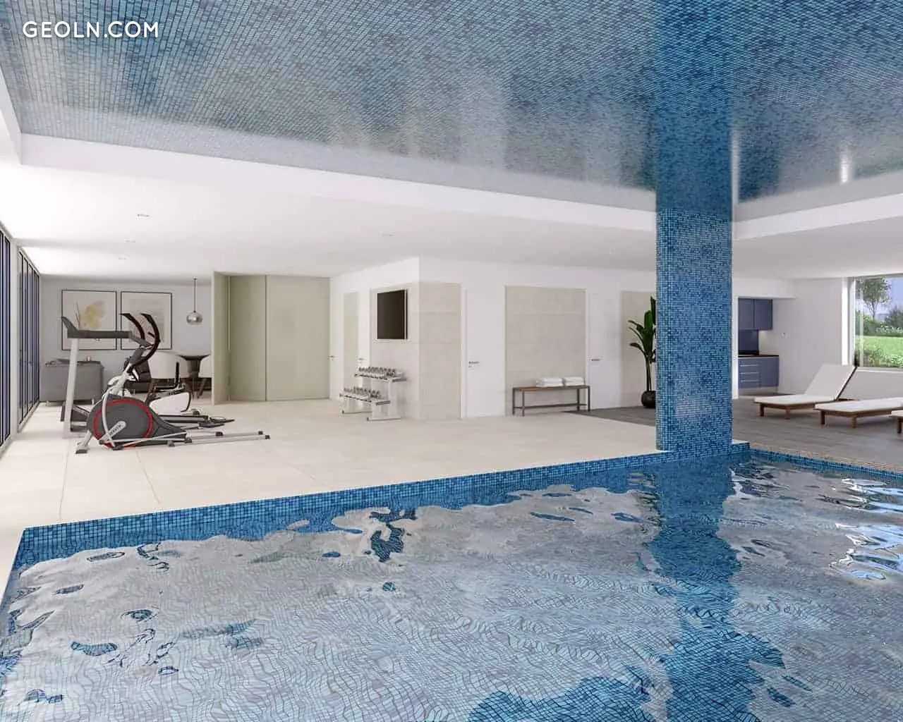 საერთო სივრცეებში შედის მისაღების დარბაზი, გამათბობელი აუზი სოლარიუმით, სპორტული დარბაზი და ტერასა ბაღისკენ.