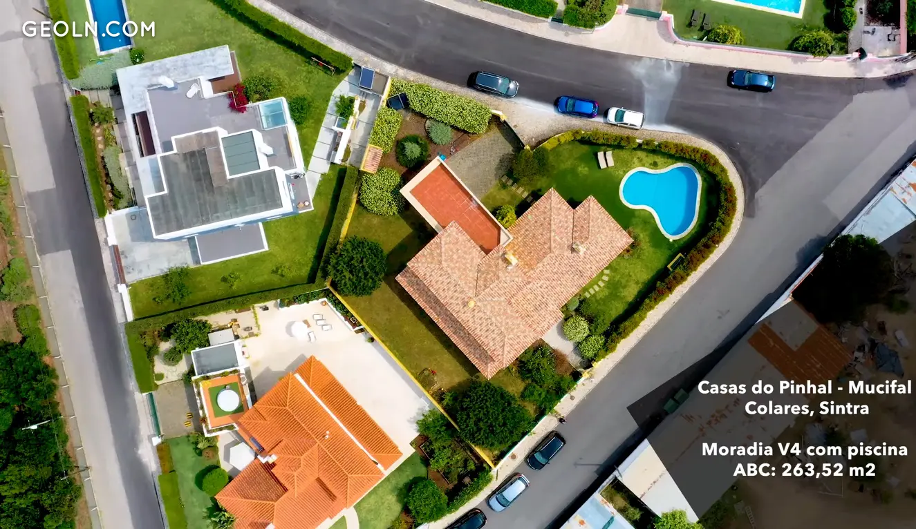 4 ოთახიანი ვილა აუზით, მდებარეობს ფიჭვნარის რაიონში, სოფელ მუჩიფალში, კოლარეს გვერდით, წყნარ ადგილას, სინტრას ცენტრიდან 15 წუთის სავალზე და პლაჟებიდან (Praia Grande and Praia das Maçãs) 10 წუთის სავალზე. იგი ჩასმულია 890 მ 2 საერთო ფართის და 263.52 მ 2 სამშენებლო ფართობზე, 110.16 მ 2 ფართობზე 0 სართულზე და 55.08 მ 2 სართულზე 1, სართულზე, გათვლილია საცხოვრებლად და აქვს ვერანდა 98.28 მ 2 პარკირებისთვის.