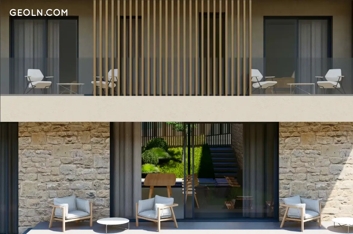 Огороженный стеной участок будет засажен средиземноморскими растениями,а зеленая зона идеально подходит для летних посиделок. Также участок будет содержать несколько парковочных мест.