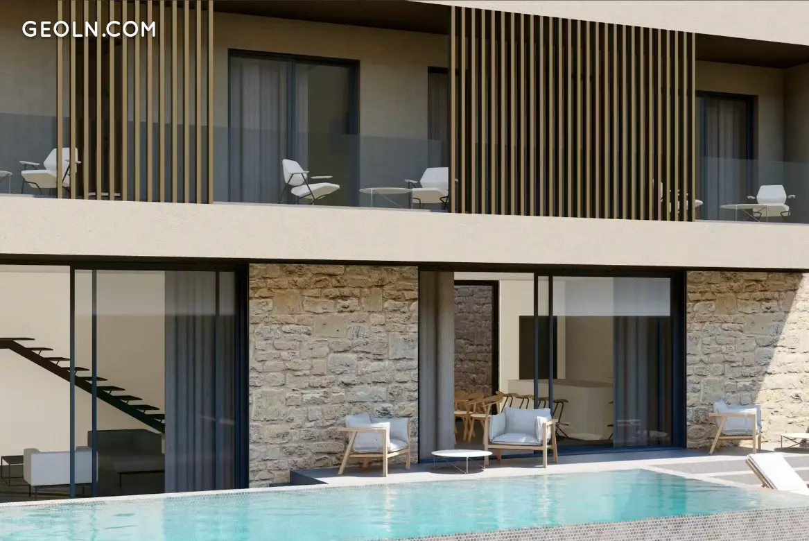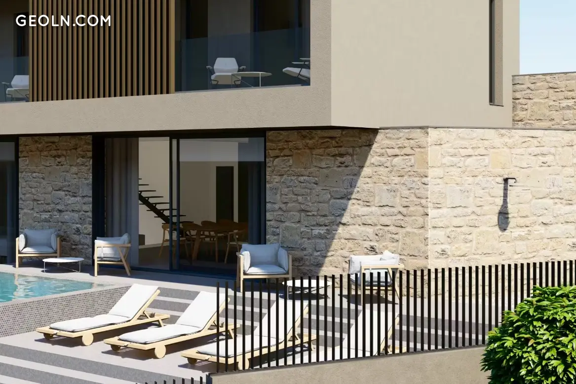 Перед виллой будет терраса с пейзажным бассейном, джакузи, летней кухней и зоной для загара.