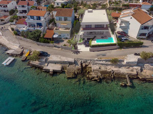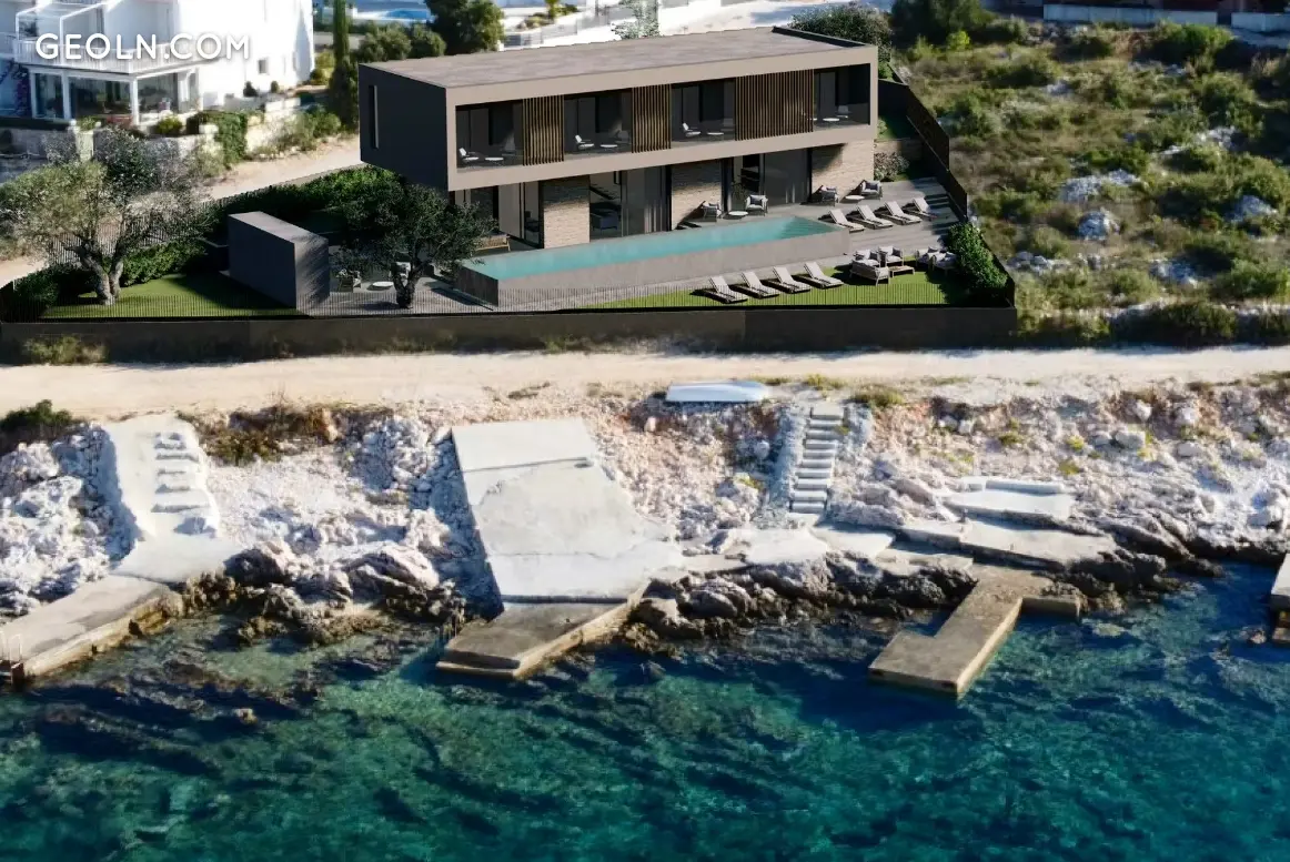Продается строящаяся элитная вилла, расположенная в окрестностях прибрежного туристического городка Рогозница, в первом ряду от моря. Вилла состоит из двух этажей, соединенных внутренней лестницей и располагает прекрасным видом на море и закат солнца. На первом этаже находится просторная гостиная открытой планировки, кухня со столовой, кладовая, гостевой туалет и тренажерный зал. Через раздвижные стеклянные стены гостиная выходит на солнечную террасу с видом на море. На втором этаже расположены четыре спальни с ванными комнатами. Каждая спальня имеет собственный балкон с захватывающим дух панорамным видом на море.