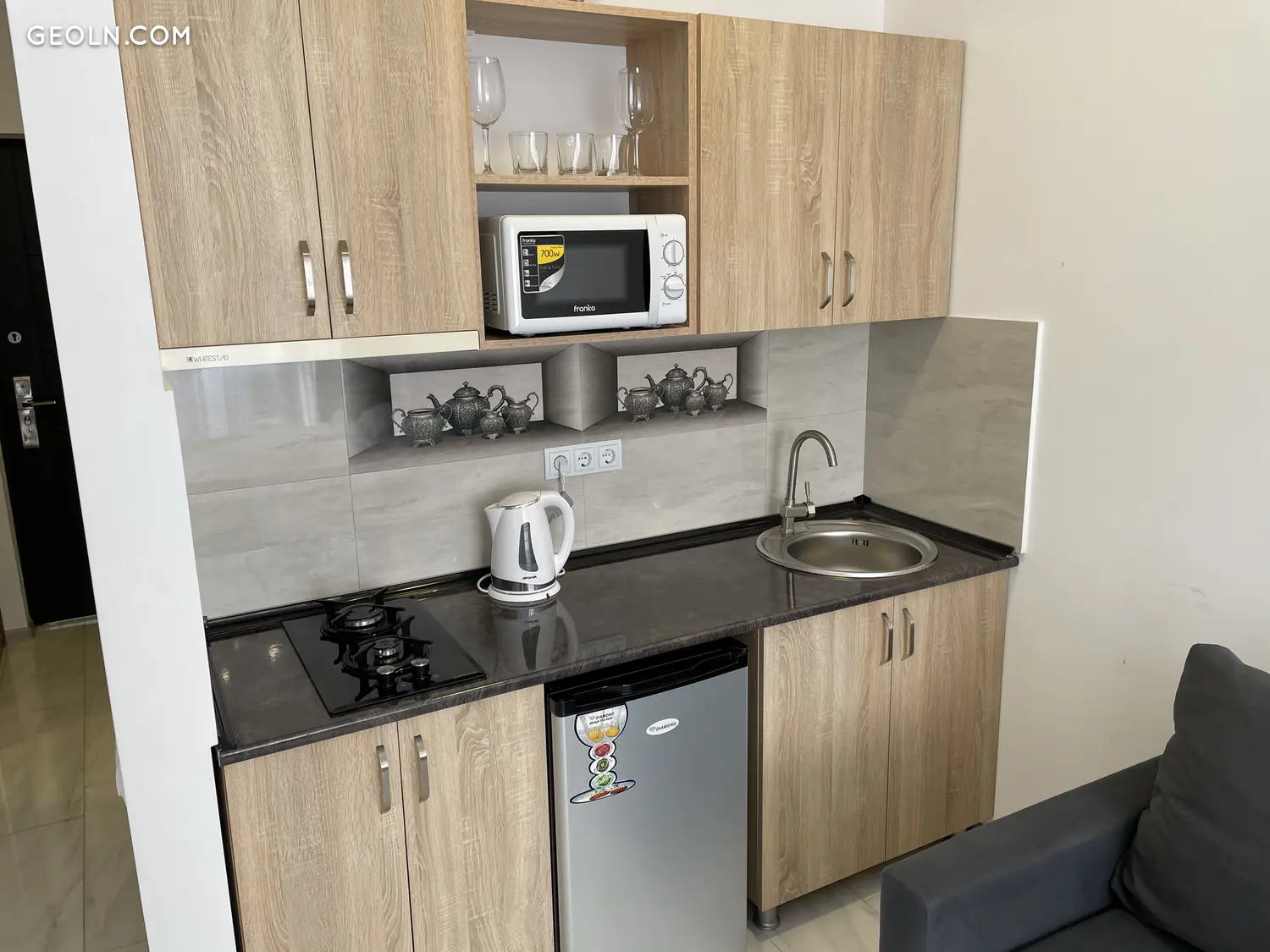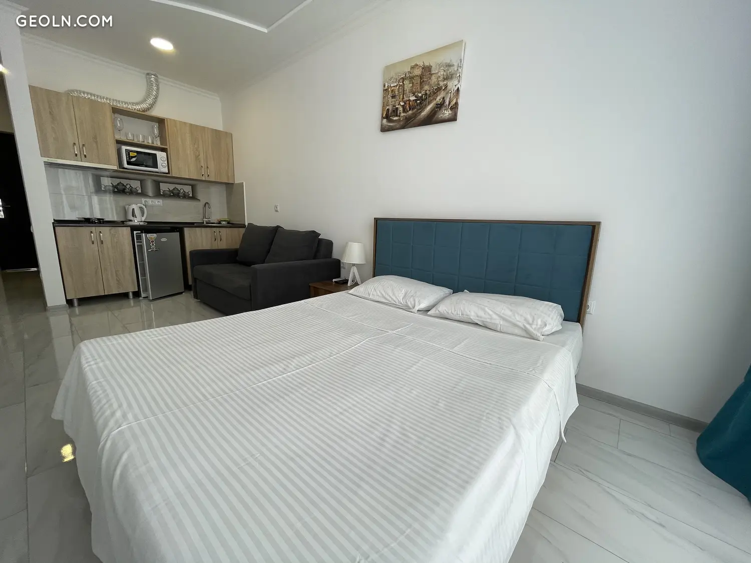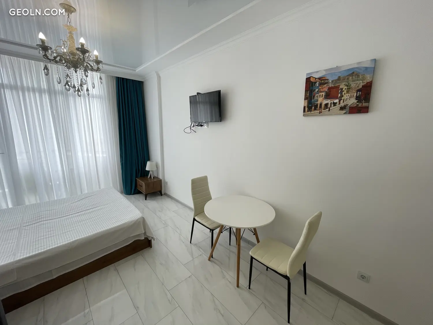 ბინა მდებარეობს მე-17 სართულზე. ფანჯრებიდან იშლება ულამაზესი ხედი ზღვაზე, მთებზე და ქალაქზე. ბათუმის მზის ჩასვლის ხედი უბრალოდ საოცარია. საღამოს ქალაქი ფანჯრებიდან უბრალოდ იპყრობს თავისი განათებით. ამ ბინების ფართობია 35 კვ.მ. ეს ბინა გათვლილია 3 ზრდასრულზე. არის დიდი ორადგილიანი საწოლი, დივანი საწოლი. ბინები სრულად აღჭურვილია საყოფაცხოვრებო ტექნიკით, ჭურჭლით. წყალი და გათბობა თბება აივანზე გაზის ქვაბით. გათბობა - რადიატორები ბინებში. ეს არის ძალიან ნათელი, პანორამული ბინა თანამედროვე რემონტით. ლოკაციის ტერიტორია სრულად არის დაცული. ყველაფერი ახლოს არის: სუპერმარკეტი და მაღაზიები, სკოდა და საბავშვო ბაღი, სასეირნო ადგილები და სათამაშო მოედნები, საზოგადოებრივი ტრანსპორტის გადასასვლელები