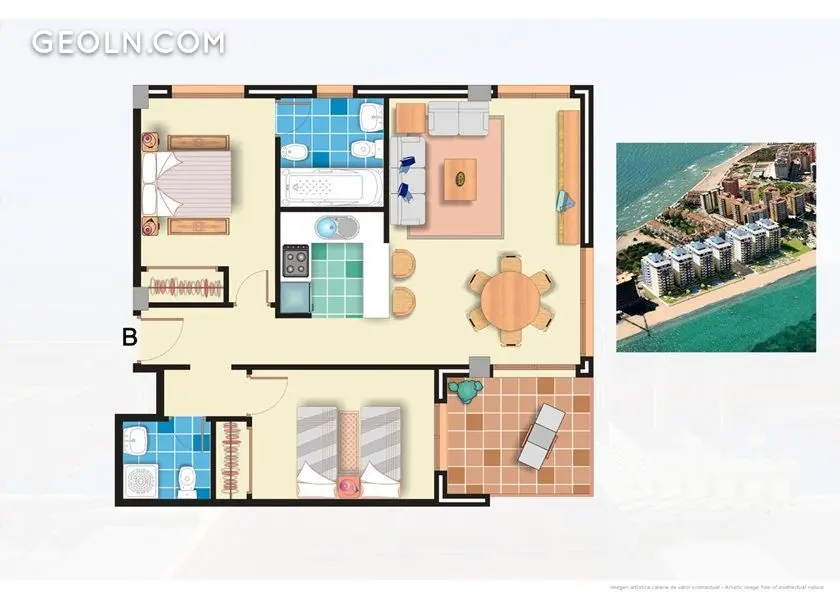 ბინა ზღვის პირველ ხაზზებინა ლა მანგაზე: მისაღები ღია სამზარეულოთი, 2 საძინებელი, 2 სველი წერტილი, ტერასა 6 მ2, პარკინგი, განსაცვიფრებელი პანორამული ხედები.კომპლექსი შედგება ოთხი 10-სართულიანი შენობისგან, პირდაპირი წვდომით სანაპიროზე და 3 აუზით.ლა მანგა არის ქვიშიანი ნამცხვარი 22 კმ სიგრძისა და 100-1200 მ სიგანის, რომელიც ჰყოფს ხმელთაშუა ზღვას და მარ მენორის ლაგუნას (პატარა ზღვა).ეს არის ერთ-ერთი ყველაზე ეგზოტიკური დასასვენებელი ადგილი კოსტა კალიდაზე, მას ხშირად უწოდებენ "სამოთხეს ორ ზღვას შორის".La Manga იდეალურია იმ მოგზაურთათვის, ვისაც სურს გაატაროს დასვენება საკუთარ თავთან და გარემომცველ ბუნებასთან - ზღვასთან, მზესთან, სანაპიროსთან ჰარმონიაში.მას აქვს ყველაფერი რაც თქვენ გჭირდებათ კომფორტული ყოფნისთვის ქალაქის აურზაურისგან შორს.170 კმ² ფართობით, სანაპირო ზოლი 70 კმ, კრისტალურად სუფთა წყალი არაუმეტეს 7 მ სიღრმეზე, მარ მენორის ლაგუნას უწოდებენ "მსოფლიოში ყველაზე დიდ საცურაო აუზს". ეს იდეალური ადგილია წყლის სპორტის მოყვარულთათვის.30 წუთში შეგიძლიათ მიაღწიოთ ქალაქ კარტახენას. ახლოს არის გოლფის კლუბი.