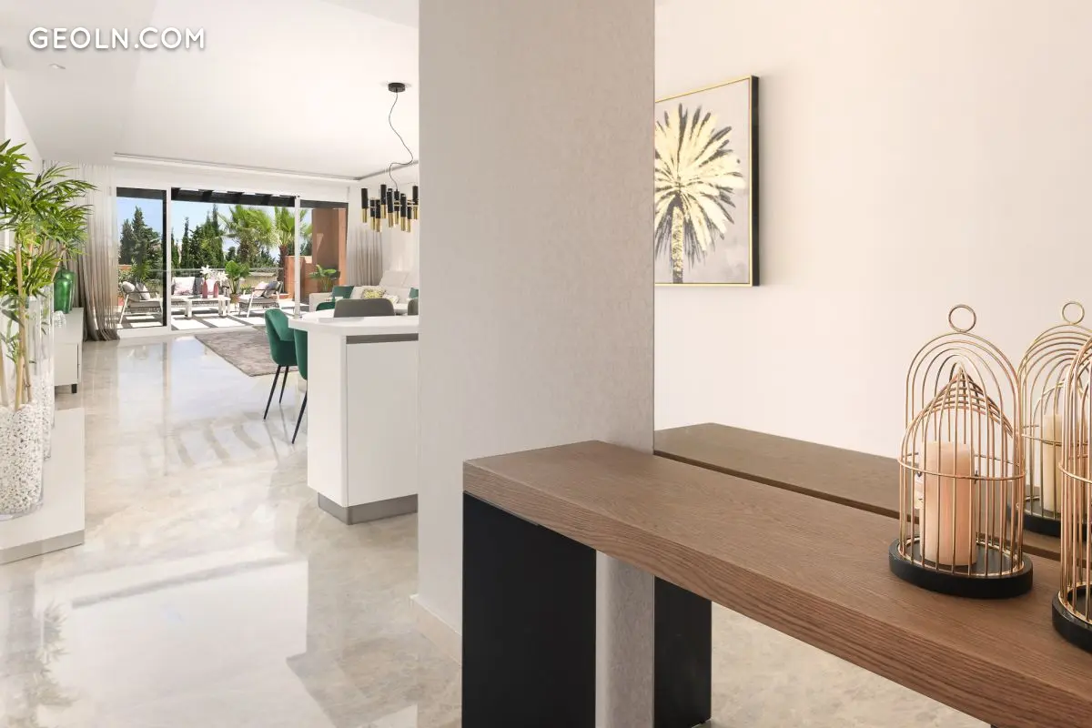 ფასები 465.000 €-დანთანამედროვე ბინები, დაახლოებით 13.000 მ2 ტროპიკულ ბაღებში, არის საცურაო აუზი და პატარა ტბა.