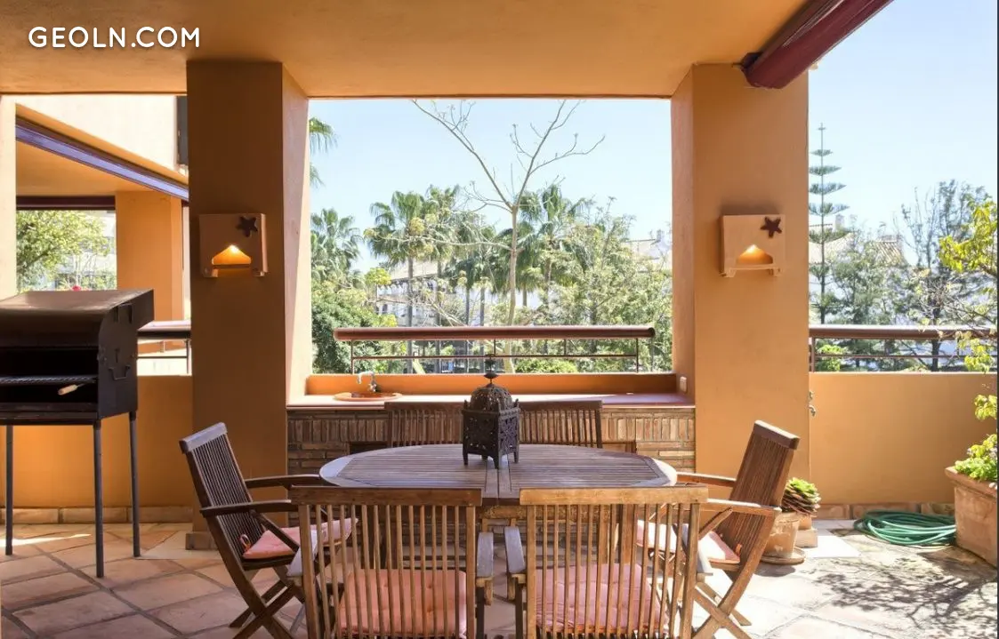ბინა სულ რაღაც 350 მეტრში სანაპირომდე!მდიდრული ბინა სამხრეთ-დასავლეთით მარბელაში, სანაპიროდან რამდენიმე მეტრში, 5 ვარსკვლავიან კომპლექსში ბრწყინვალე ტროპიკული ბაღებით, 5 საცურაო აუზით, რომელთაგან ერთი გაცხელებულია და 24-საათიანი დაცვა.