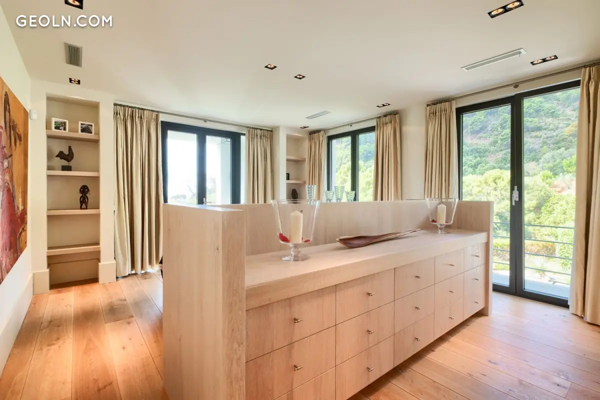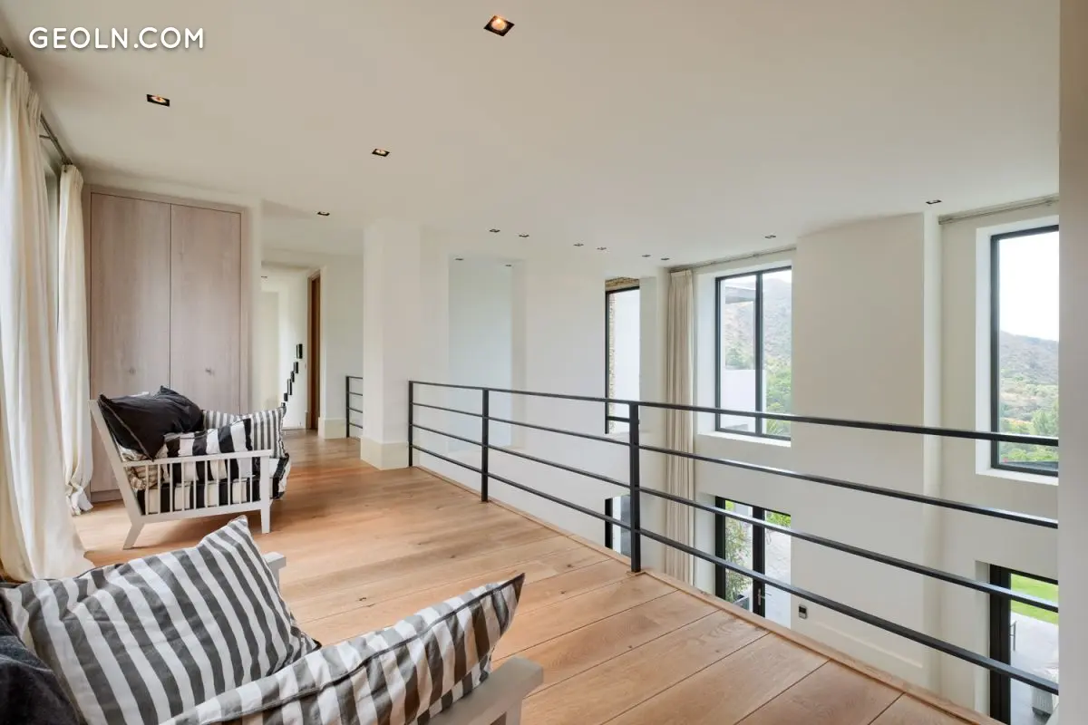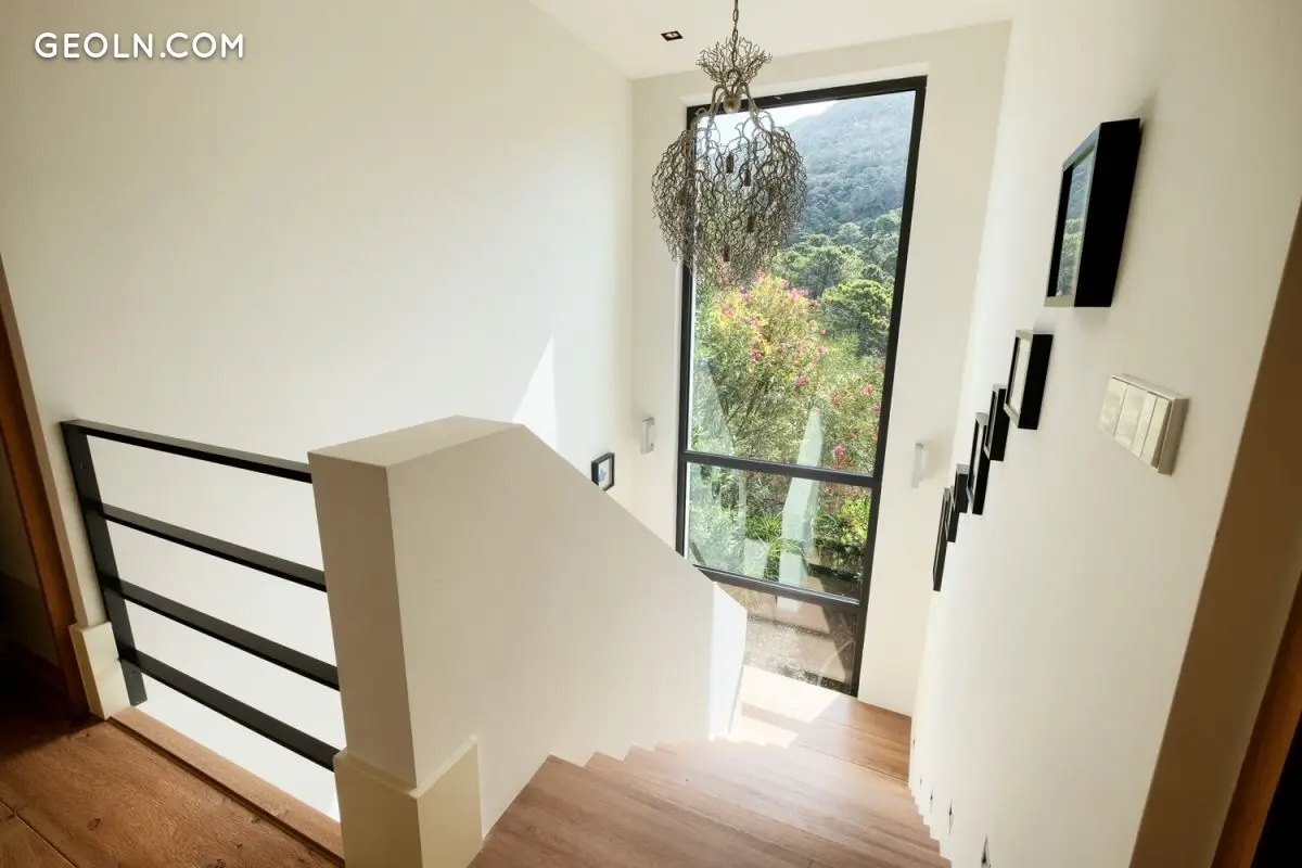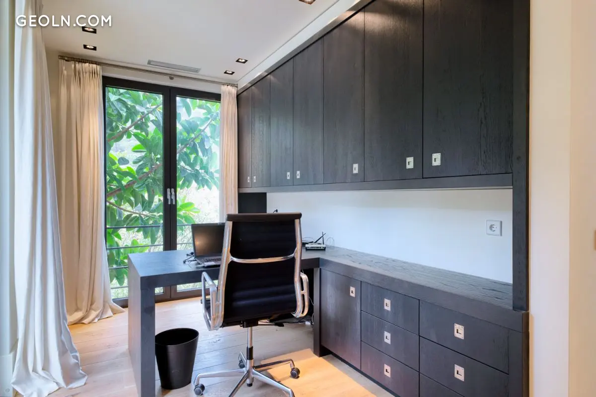 პირველი სართული: სადარბაზო, მისაღები ბუხრით და მაღალი ჭერით, ღია გეგმის სამზარეულო-სასადილო ოთახი Miele-ს ტექნიკით, სამაგისტრო საძინებელი ცალკე გასახდელი ოთახით, სტუმრების ტუალეტი და სამრეცხაო ოთახი. პირდაპირი წვდომა გადახურულ და დაუფარავ ტერასებზე, ბაღსა და აუზზე.
