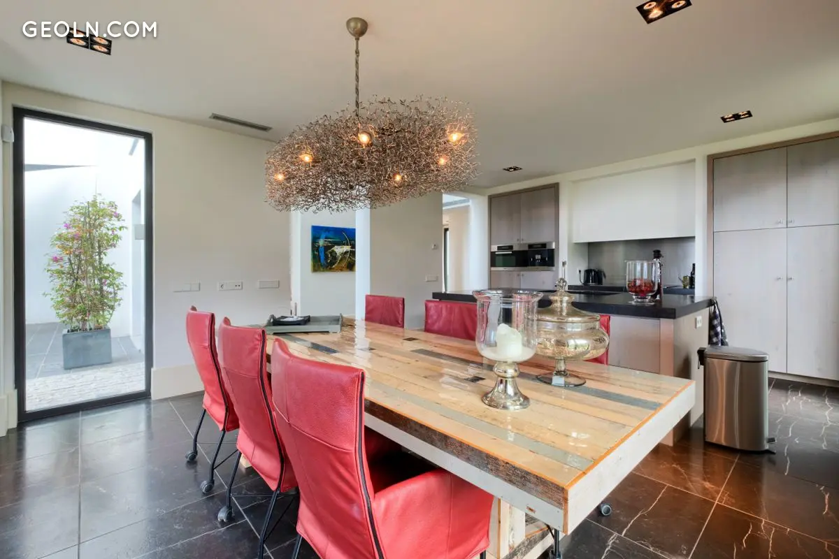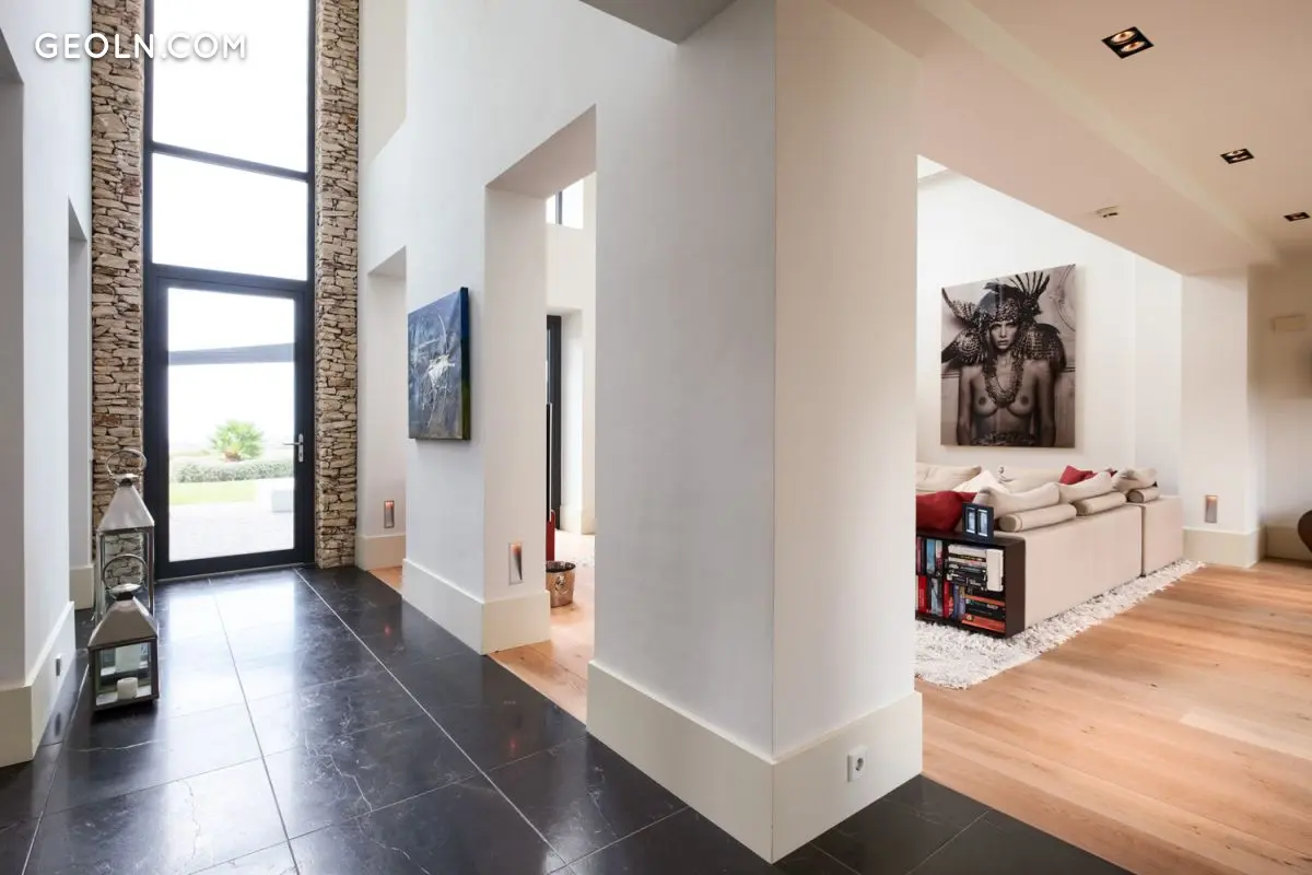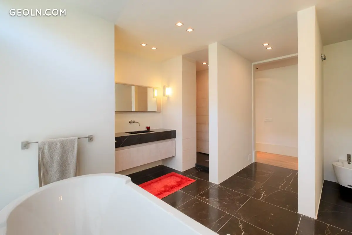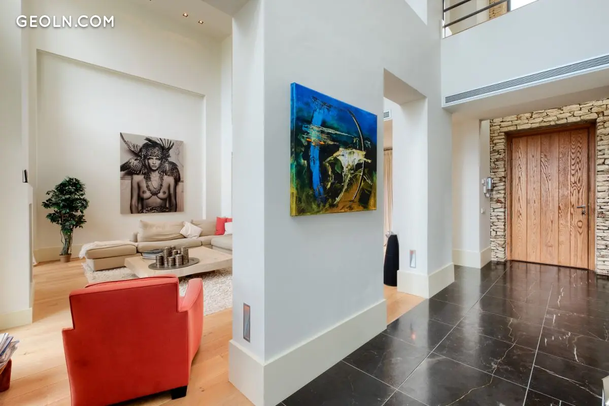 პირველი სართული: სადარბაზო, მისაღები ბუხრით და მაღალი ჭერით, ღია გეგმის სამზარეულო-სასადილო ოთახი Miele-ს ტექნიკით, სამაგისტრო საძინებელი ცალკე გასახდელი ოთახით, სტუმრების ტუალეტი და სამრეცხაო ოთახი. პირდაპირი წვდომა გადახურულ და დაუფარავ ტერასებზე, ბაღსა და აუზზე.