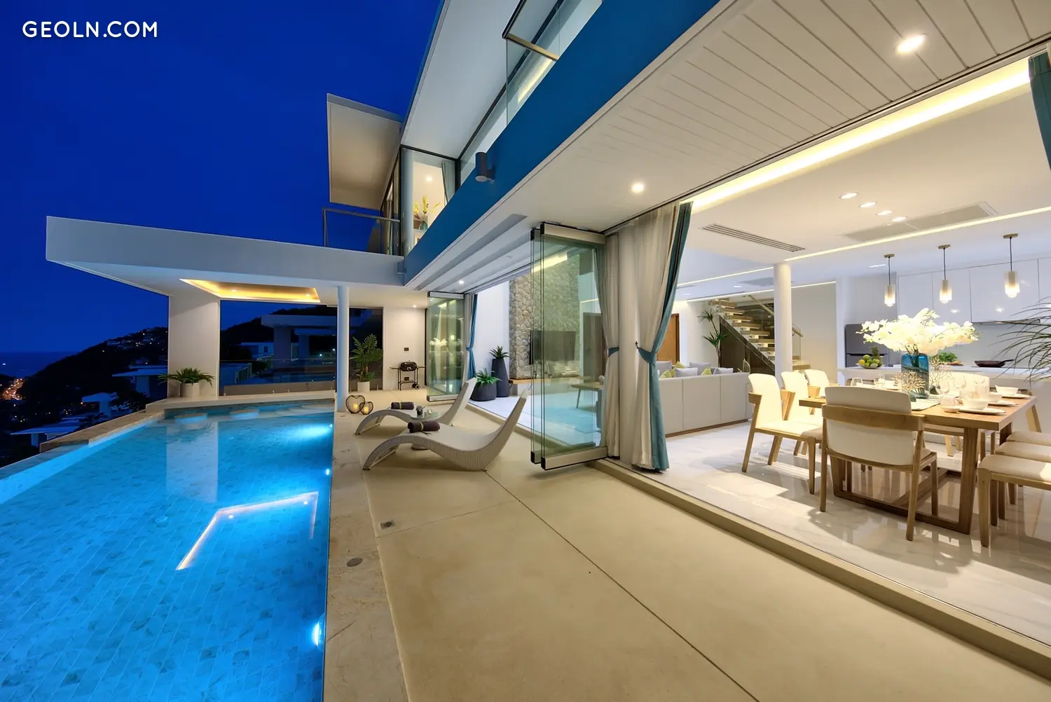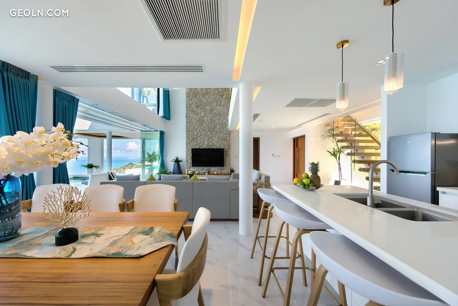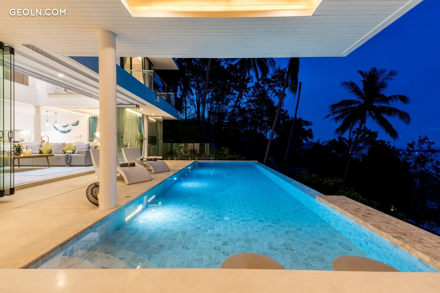 ეს თანამედროვე ორი სართულიანი ვილა მდებარეობს ხატოვანი ფერდობზე, პრესტიჟულ რაიონში ჩავენგში, კოჰ სამუის ჩრდილო-აღმოსავლეთ ნაწილში. სახლის თითოეული ნაწილი სთავაზობს breathtaking პანორამულ ხედებს ოკეანეზე, ხოლო ყურადღებიანი დიზაინი და დეტალებზე ყურადღება ქმნის კომფორტისა და პირადი სივრცის ატმოსფეროს. ქონება მდებარეობს დაცულ საცხოვრებელ კომპლექსში, რაც უზრუნველყოფს მშვიდობას და უსაფრთხოებას, ხოლო ინფრასტრუქტურასთან სიახლოვე ამ ვილას ხდის მიმზიდველს როგორც მუდმივი საცხოვრებლად, ასევე ქირავნობის ბიზნესში ინვესტირებისათვის.