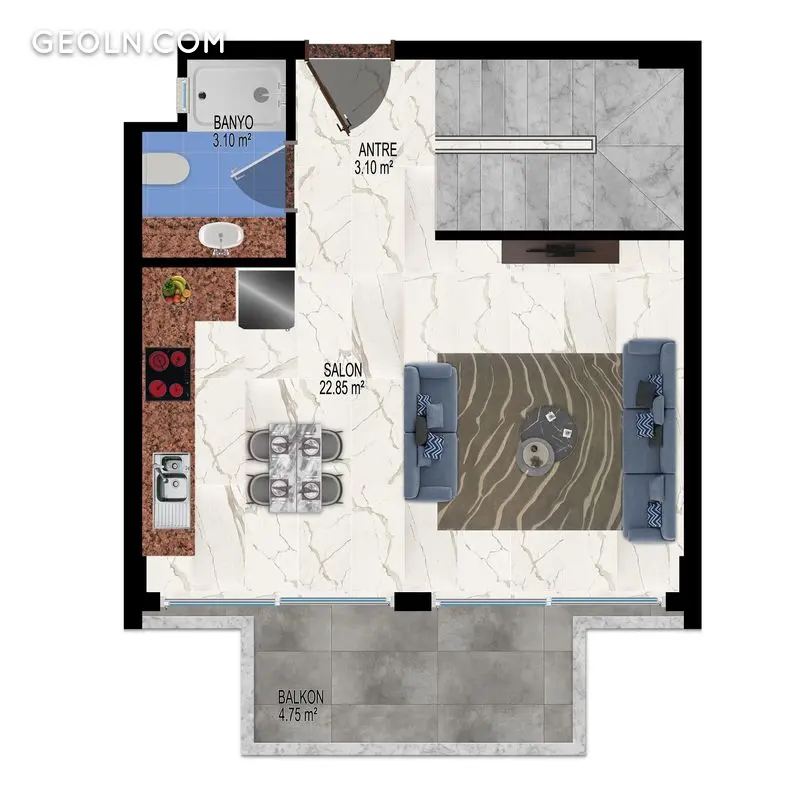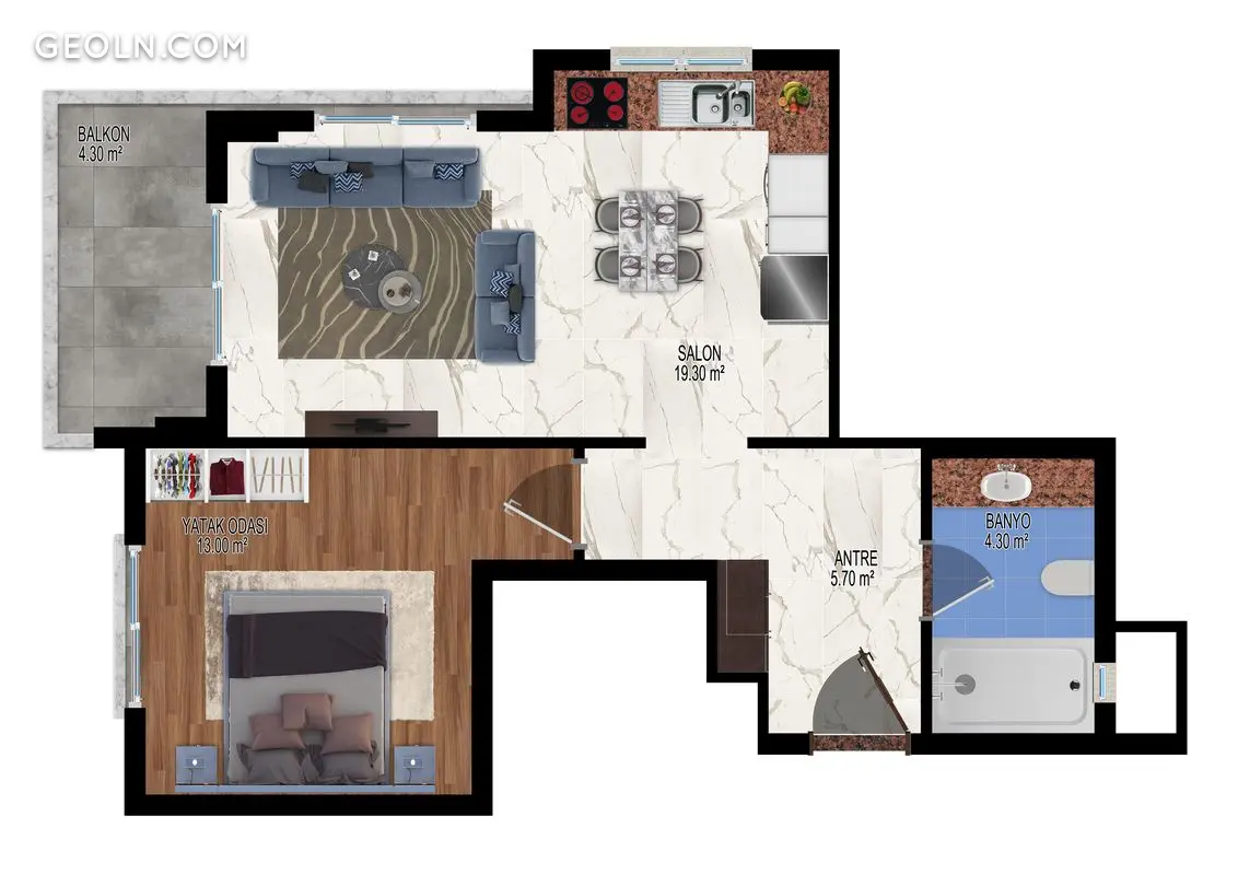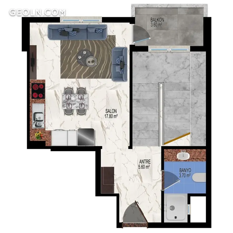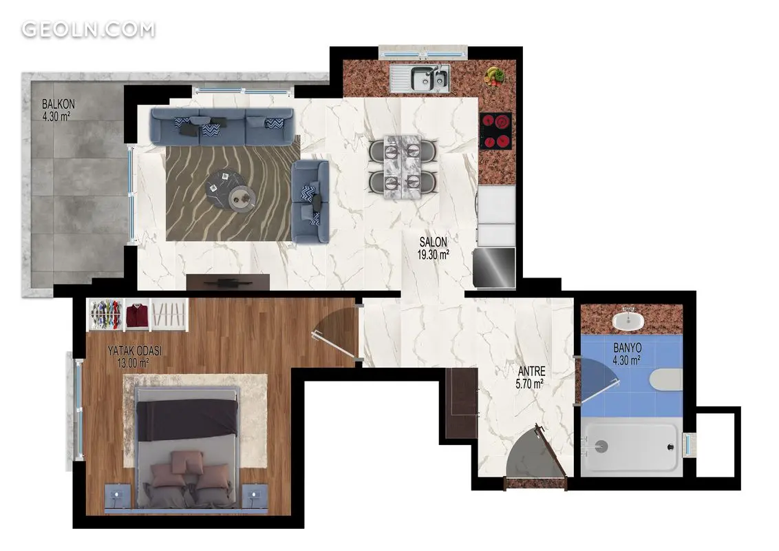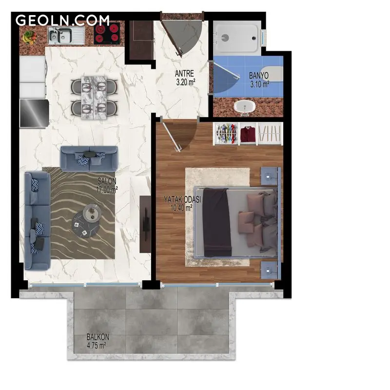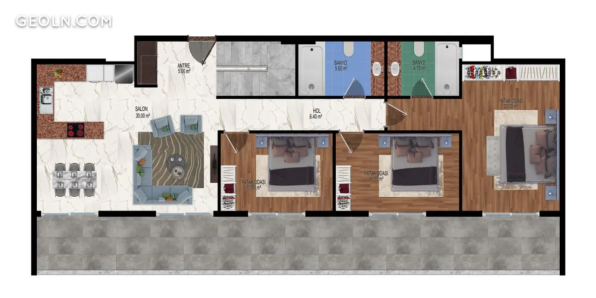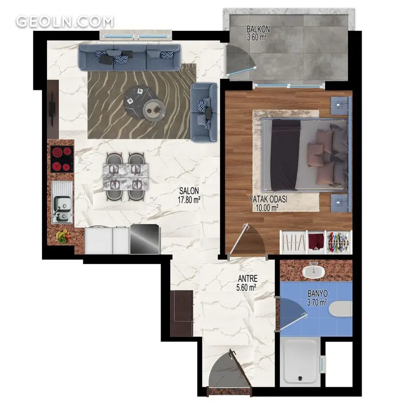 ბინა 1 ოთახიანი 55 მ² ალანიაში, თურქეთი