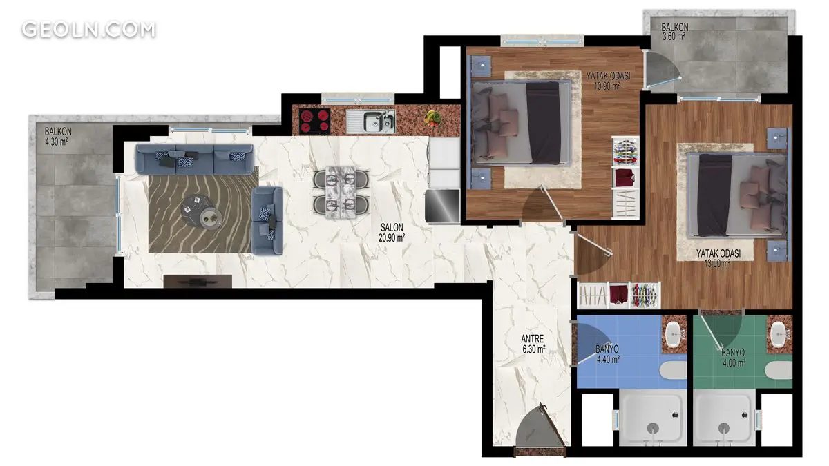 - 1+1 – 55 მ2