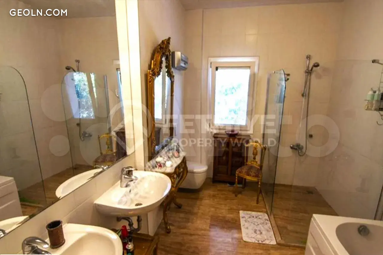 Просторная кухня-гостиная с выходом на террасу, в сад,коридор, кладовая, ванные, спальни. Большая зеленая территория с бассейном.