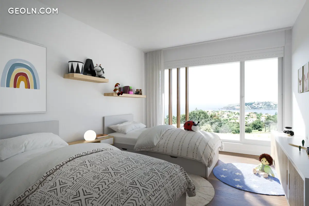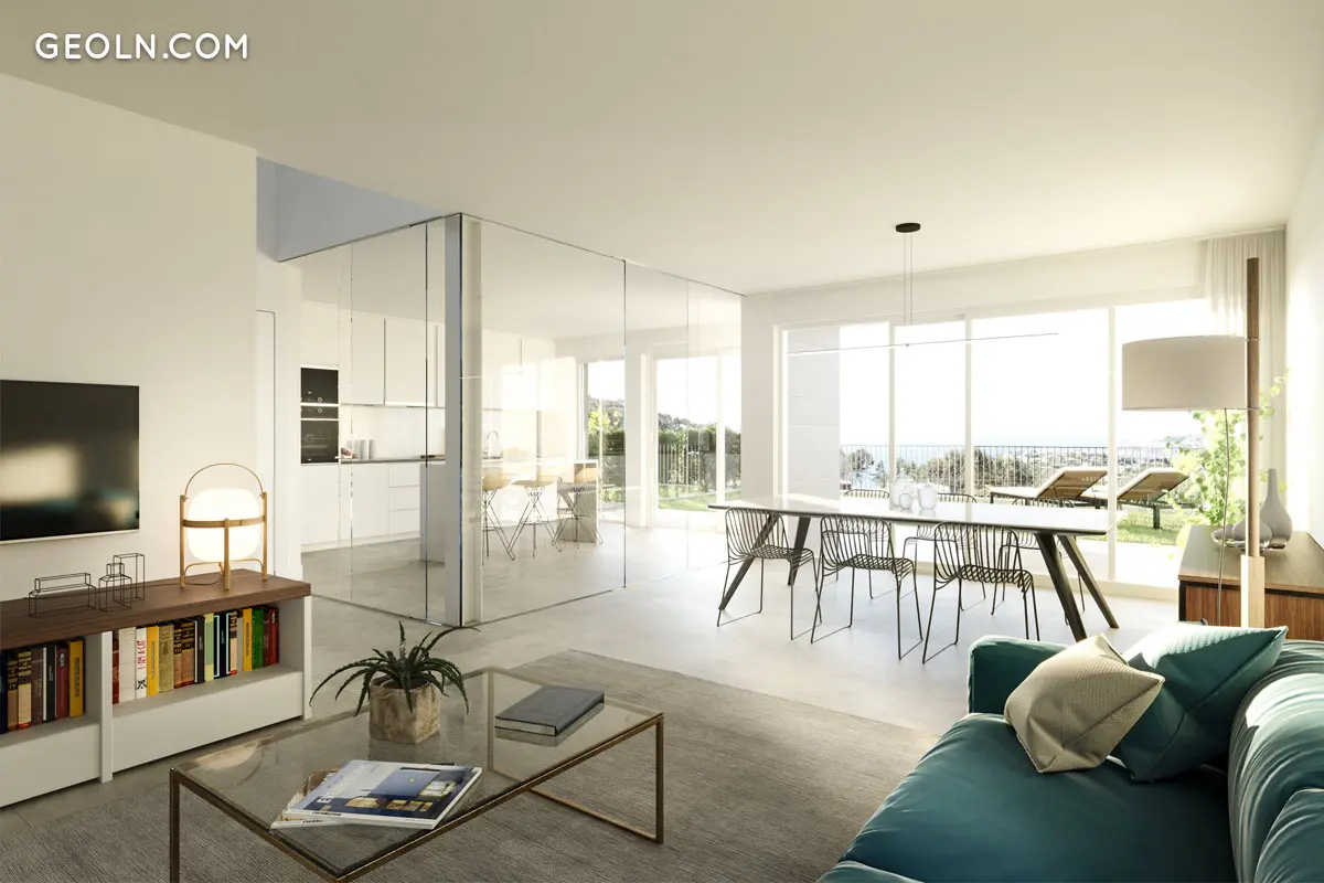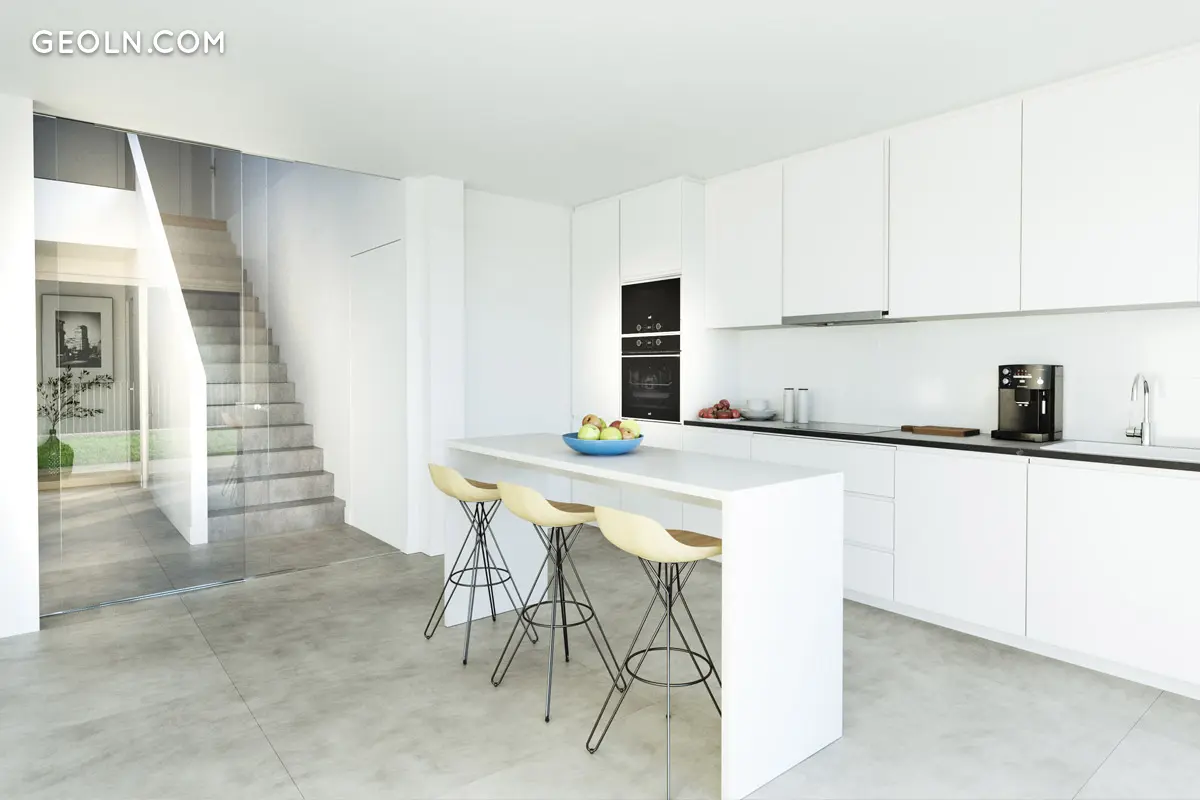 შიგნით ნახავთ ნათელ და ფართო ოთახებს. გარდა ამისა, მინის პანელების საშუალებით განცალკევება მისაღები ოთახისა და სამზარეულოს შორის ღია შეხებას მოუტანს პირველ სართულს. სახლების დიზაინი თანამედროვეა და აერთიანებს ნეიტრალურ ტონებს კედლებში და ინტერიერის ხუროს სამუშაოებში ლამინირებული იატაკითა და აბაზანებში და სამზარეულოში ხარისხიანი კერამიკული ფილებით. დაბოლოს, სამზარეულოს მიწოდება საოჯახო ტექნიკითაა აღჭურვილი.