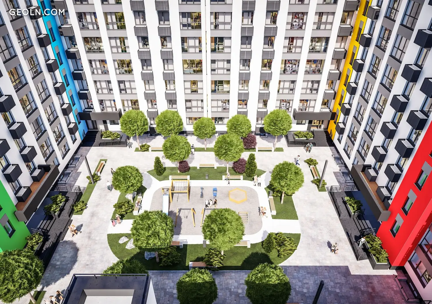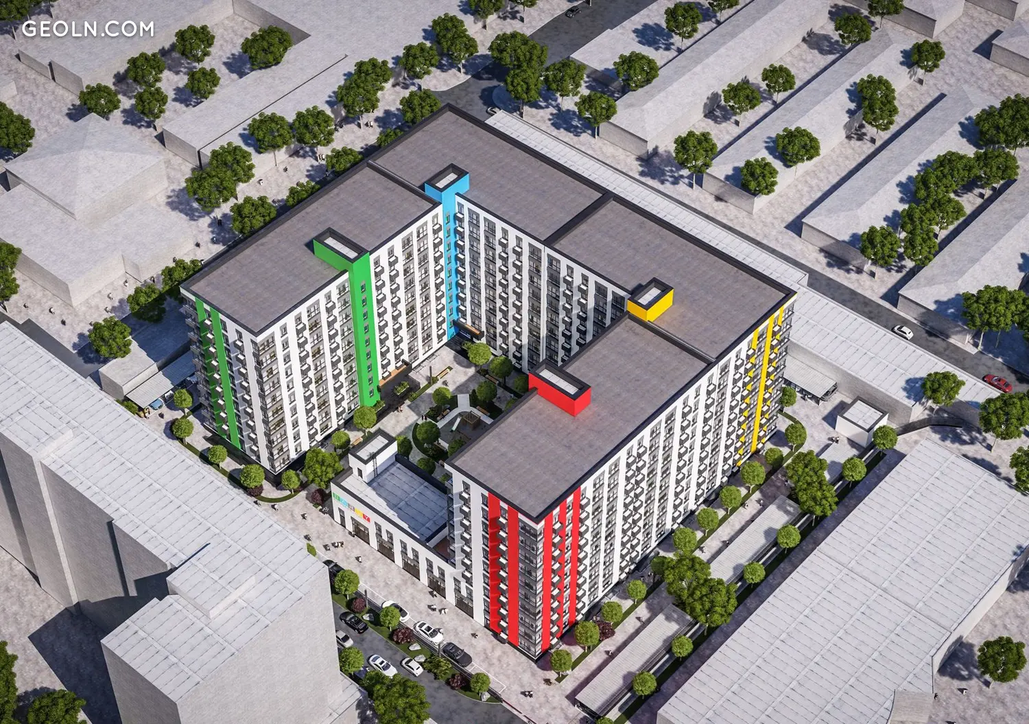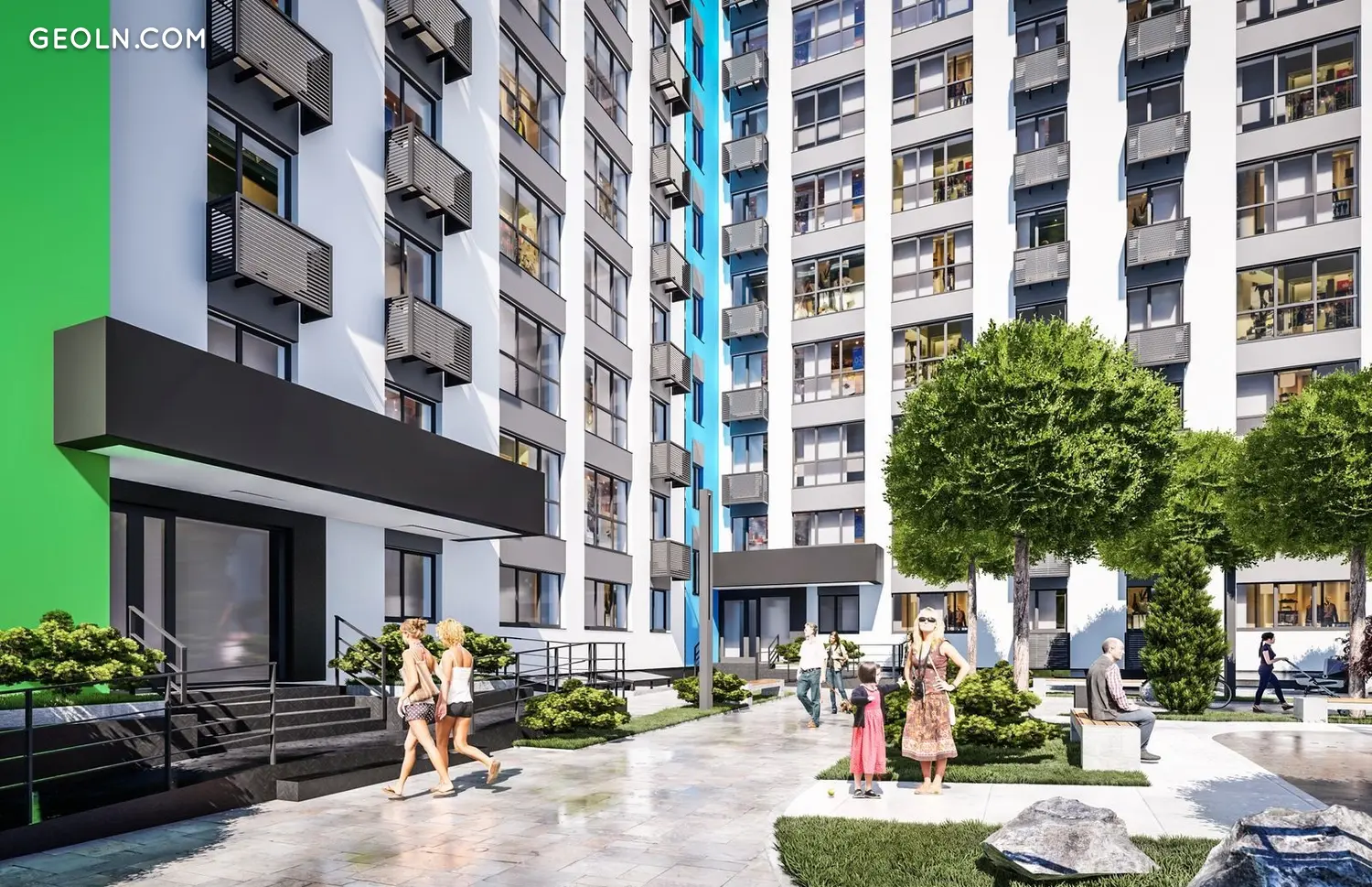 ფასადების მკაფიო გეომეტრიული ფორმები ხაზგასმულია დეკორაციის ნათელი კონტრასტული ფერებითა და ღამით - არქიტექტურული განათებით. მომიჯნავე ტერიტორიის მოწყობის პროექტი ითვალისწინებს განათების, ასფალტირებული საცალფეხო შესახვევებისა და პარკირების ადგილებს კომპლექსის გარედან.
