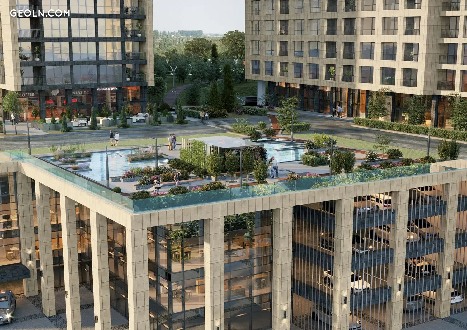 საერთო სტილობალური ნაწილი იქნება კომერციული ფართი, სადაც მაღაზიები, სუპერმარკეტი, სილამაზის სალონები, ბანკის ფილიალები და მოსახლეობის კომფორტისთვის სასარგებლო სერვისები გაიხსნება. სტილობატის სახურავი იქნება ხეივნების გასეირნების ადგილი გამწვანებით.