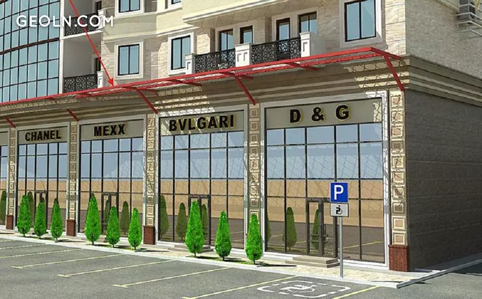 Paved driveways and walkways. Decorative shrubs are planted, street lighting devices are installed. The lower floors of the new building are designed to accommodate commercial facilities.