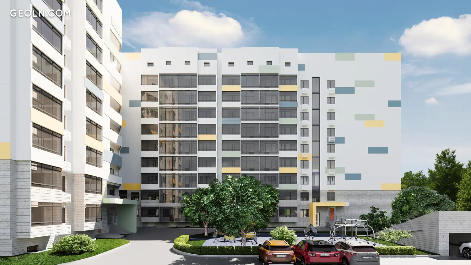The structure is based on a monolithic reinforced concrete frame, which provides earthquake resistance of 9 points and good indicators of energy efficiency of housing. The facade is insulated and revetted with fiber cement slabs, which will preserve the aesthetic appearance of the new building for many years. Also on the facades there are special baskets for the installation of air conditioners.