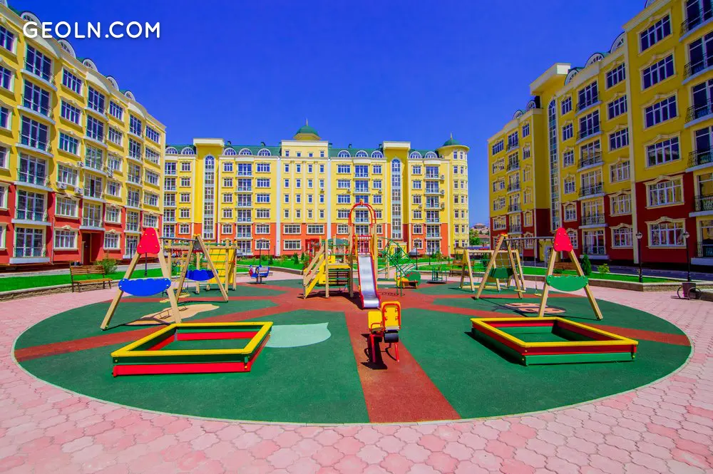 This is a modern comfortable new building of four six-storey houses, located on an area of 2 hectares. All buildings are made in a classic style using the latest technologies for the life support of residents. The houses were built in an ecologically safe area with clean mountain air and picturesque natural panoramas. There are no industrial plants nearby. Residential complex Tan Nury in Almaty is distinguished by high seismological resistance.
