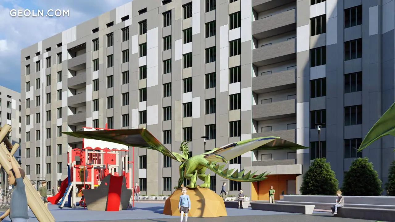 The Dragon City complex will have a courtyard closed to outsiders. Here, playgrounds for children of different age groups and sports grounds with outdoor exercise equipment are being built, walking paths are being laid and places for recreation are being equipped. An important feature of the new building is a kindergarten in the courtyard.